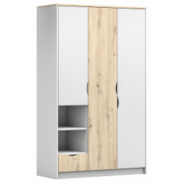 1S3D ruhásszekrény - JOY I 19, Fehér/Artisan Tölgy