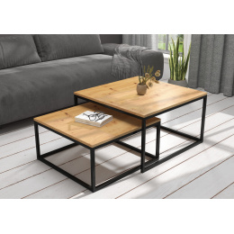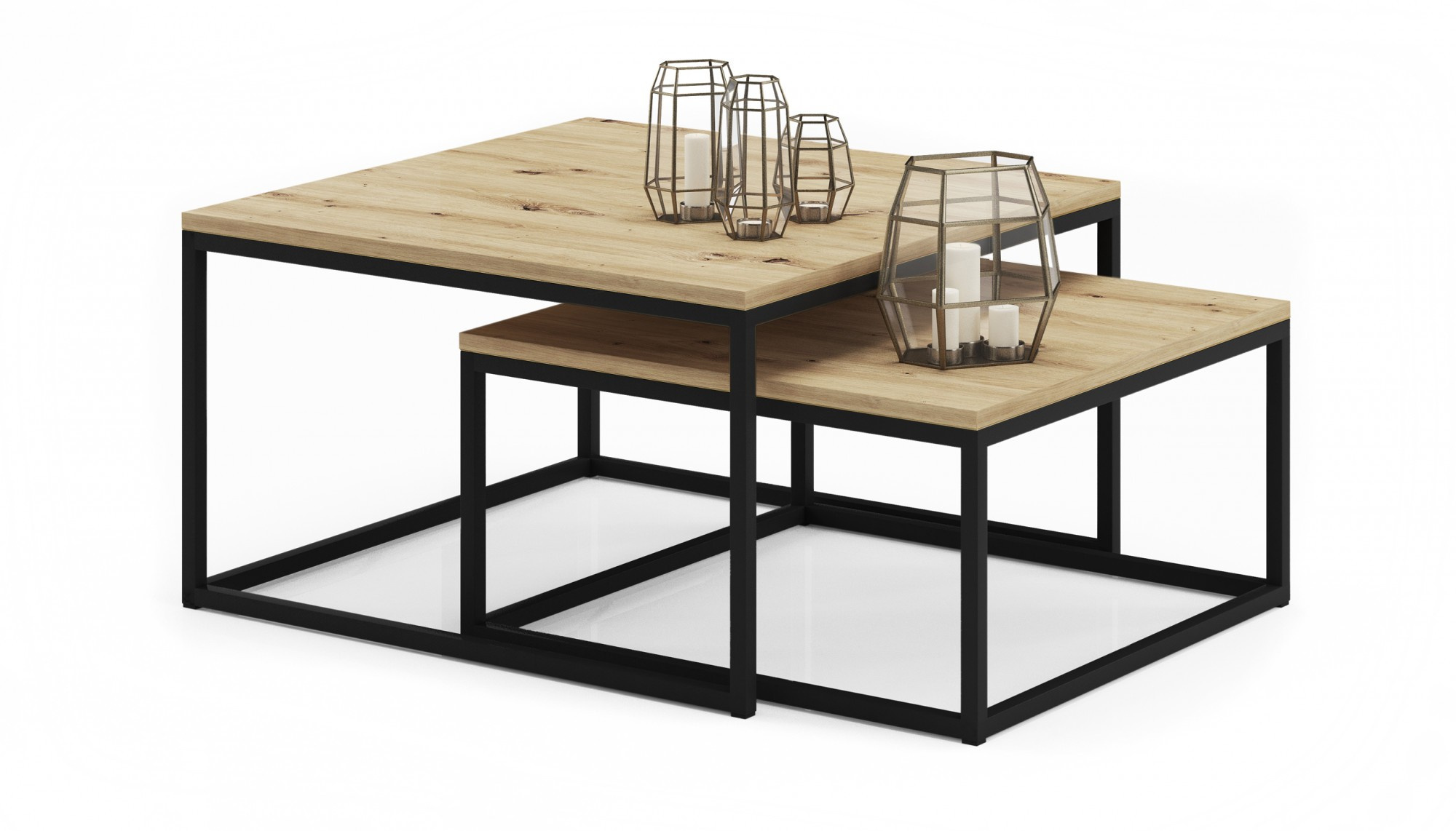 KAMA dohányzóasztal készlet acél vázzal és laminált lapból készült asztallappal. A KAMA ideális hely a kávé melletti pihenésre. Egyszerű és egyben rendkívüli design, amely minden belső térbe illik.