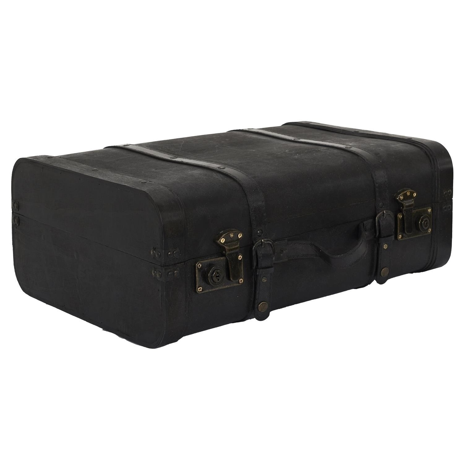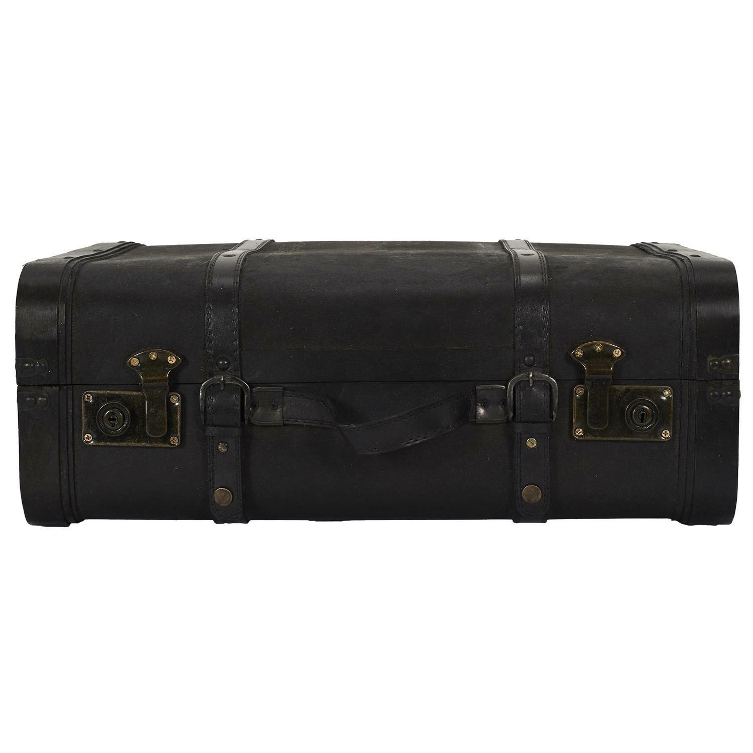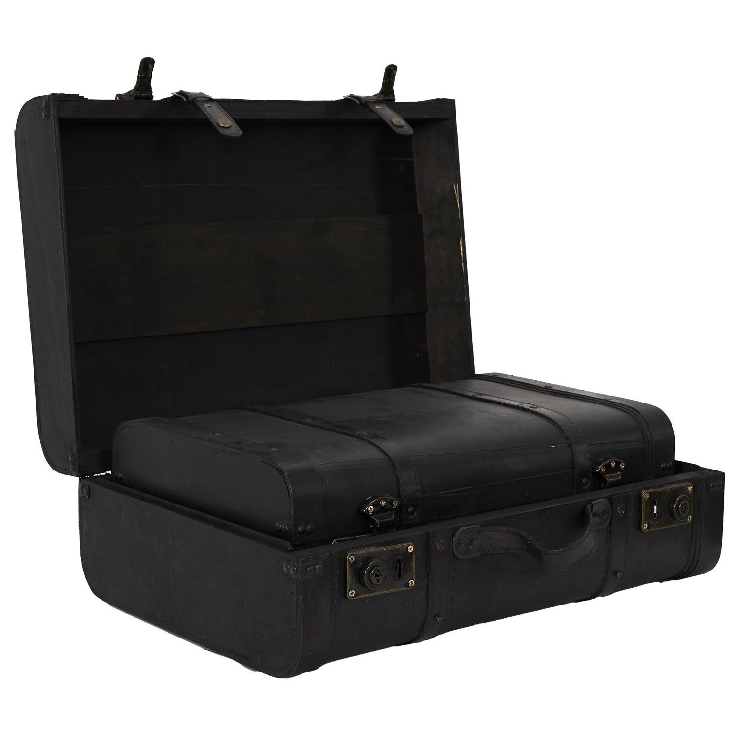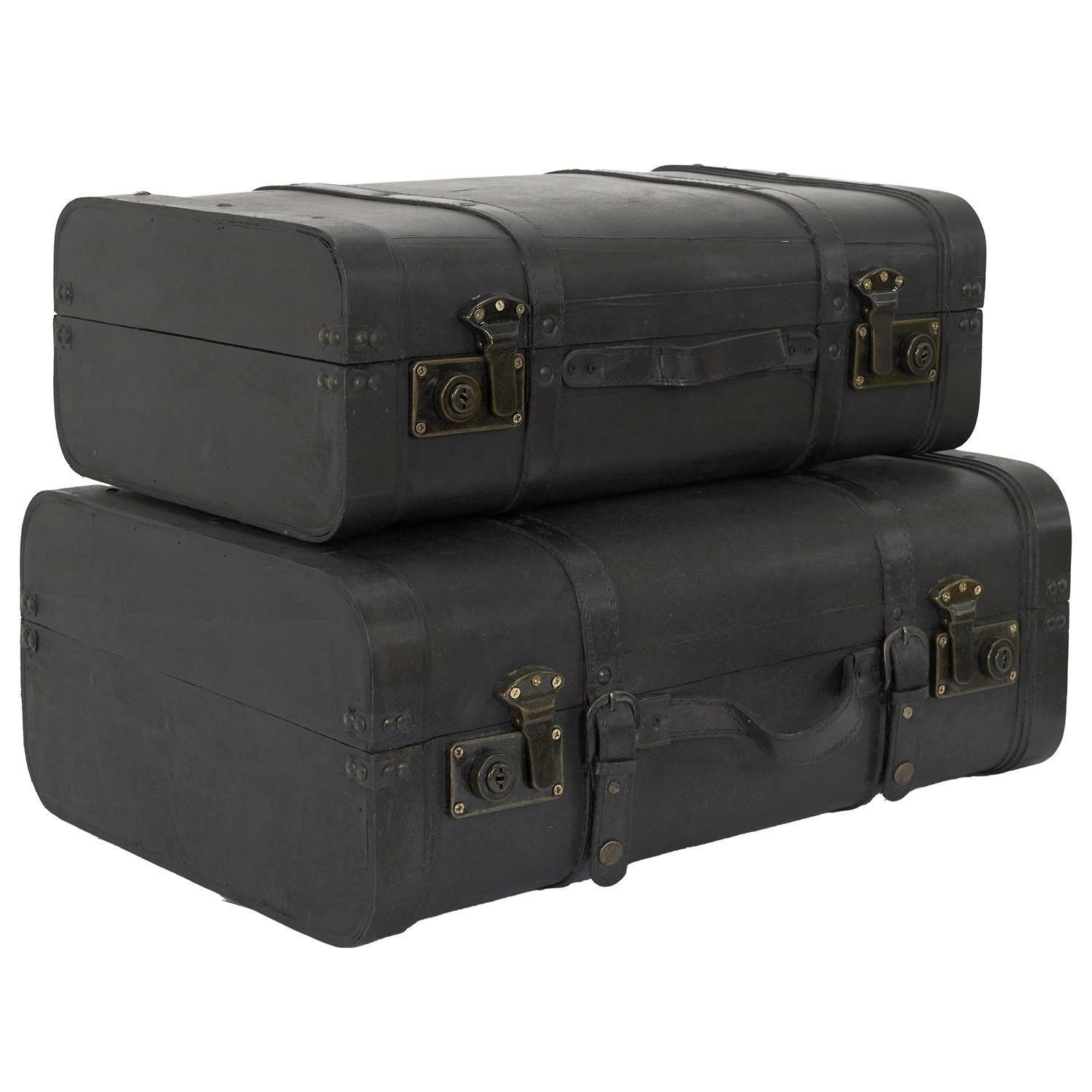A vintage stílusú bőröndök eleganciát kölcsönöznek a belső térnek! A készlet két bőröndből áll, amelyek farostlemezből és műanyagból készültek. Az egész fekete színvilágban van megőrizve. A vizuálisan öregített bőröndök sötét arany színű szerelvényekkel rendelkeznek. A bőrönd elemei egyenetlenek, és a textúra hibákat tartalmazhat, mindez azért, hogy a lehető legjobban közvetítse a retro stílust vizuálisan. A készlet 2 különböző méretű bőröndből áll.