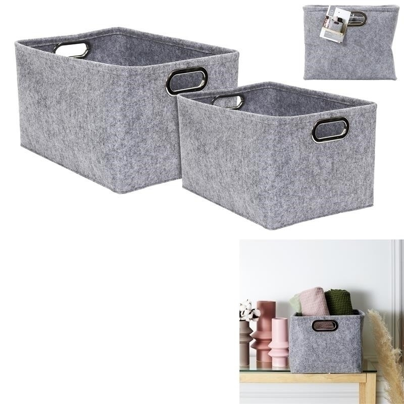 A 2 darab filc doboz készlet nemcsak apró tárgyak tárolására alkalmas, hanem takarók, ágytakarók vagy plüssállatok számára is. Dobozok méretei: nagyobb: 40x30x24,8 cm, kisebb: 35x25x20 cm