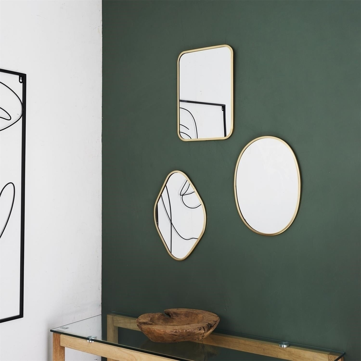 A modern Hampton stílusú tükrök arany, ívelt kerettel ideális befejezései lesznek az előszoba vagy a hálószoba elrendezésének.