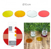Színes, üveg poháralátétek vagy poháralátétek az Art Deco stílusú dekoráció elemei. A 10 cm átmérőjű és 1 cm magasságú alátétek megvédik a faasztalunkat az égési sérülésektől. A tányéralátétek színes és tavaszi megjelenést kölcsönöznek az asztali elrendezésünknek. A készlet 4 üveg alátétet tartalmaz.