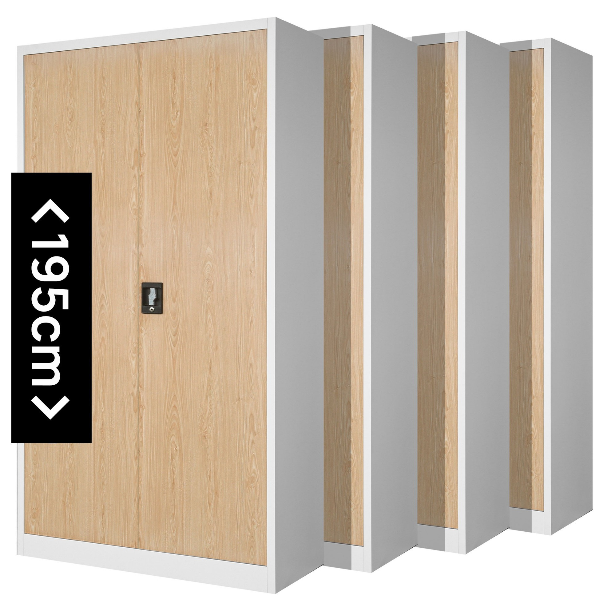 4 db JAN H irodai fém szekrény szett, 900 x 1950 x 400 mm, Eco Design: fehér/ sonoma tölgy