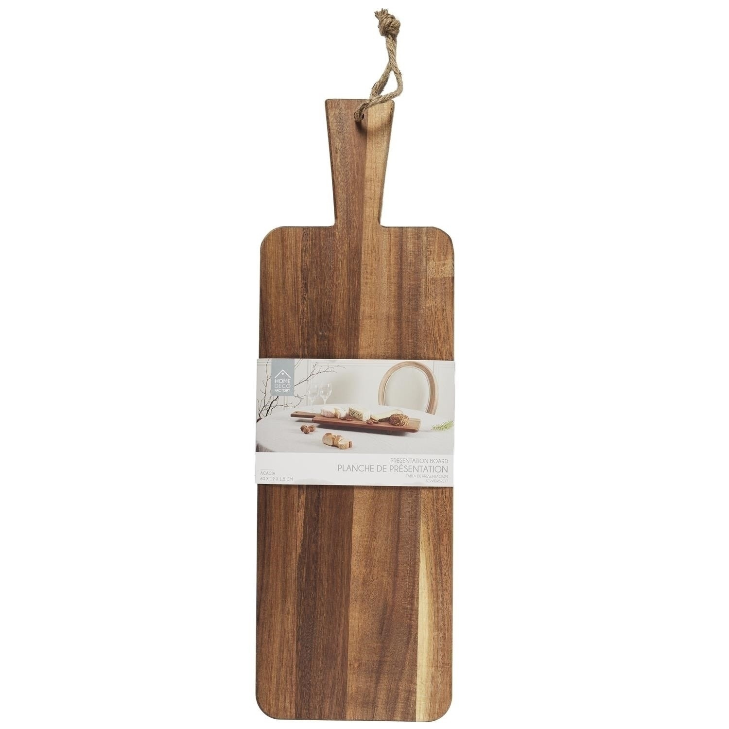 Elegáns kiállítótábla, amely kiváló minőségű akácfából készült, 60 cm hosszú. Ideális dekorációk, növények, könyvek vagy más tárgyak kiállítására. A természetes akácfa kezelés melegséget és varázst kölcsönöz minden belső térnek, miközben egy darab természetes szépséget is hoz magával. A szilárd szerkezet biztosítja a tartósságot és a stabilitást, ami ezt a táblát praktikus és stílusos kiegészítővé teszi minden otthonba vagy irodába. Hosszúság: 60 cm Magasság: 1,5 cm Mélység: 19 cm Súly: 500 g Anyag: Akácfa