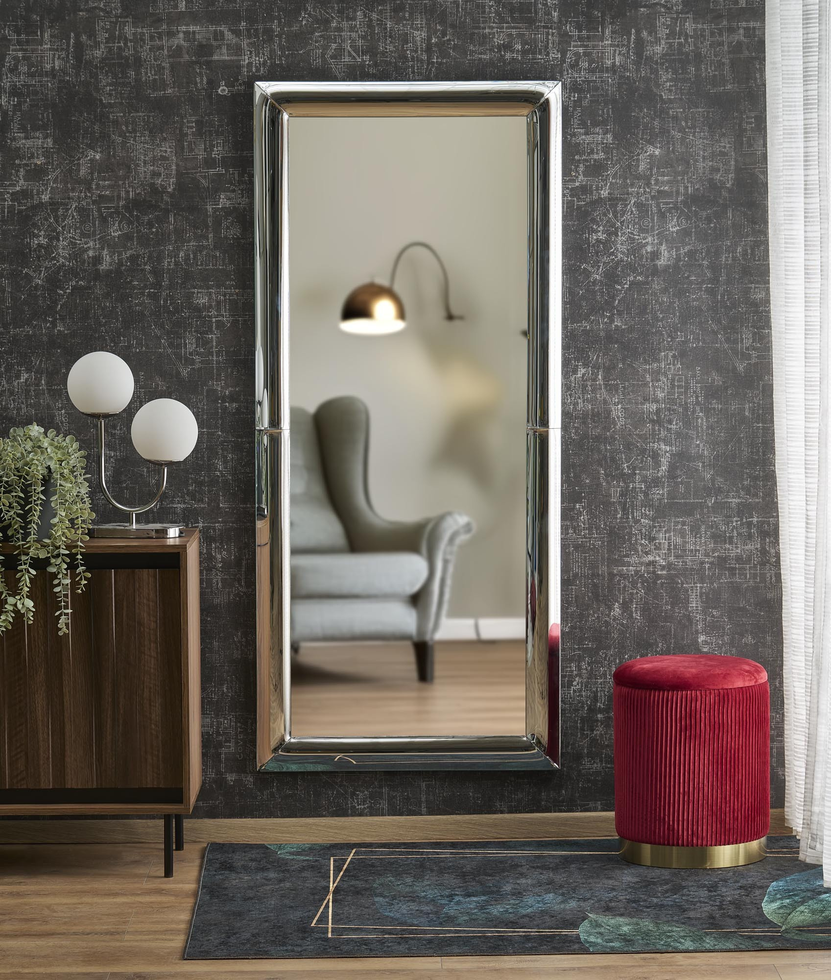 tükör, méretek: 72/162/2.5 cm, anyag: üveg, szín: ezüst
