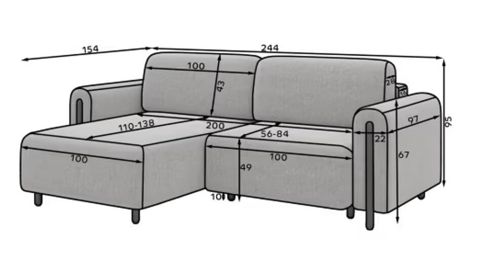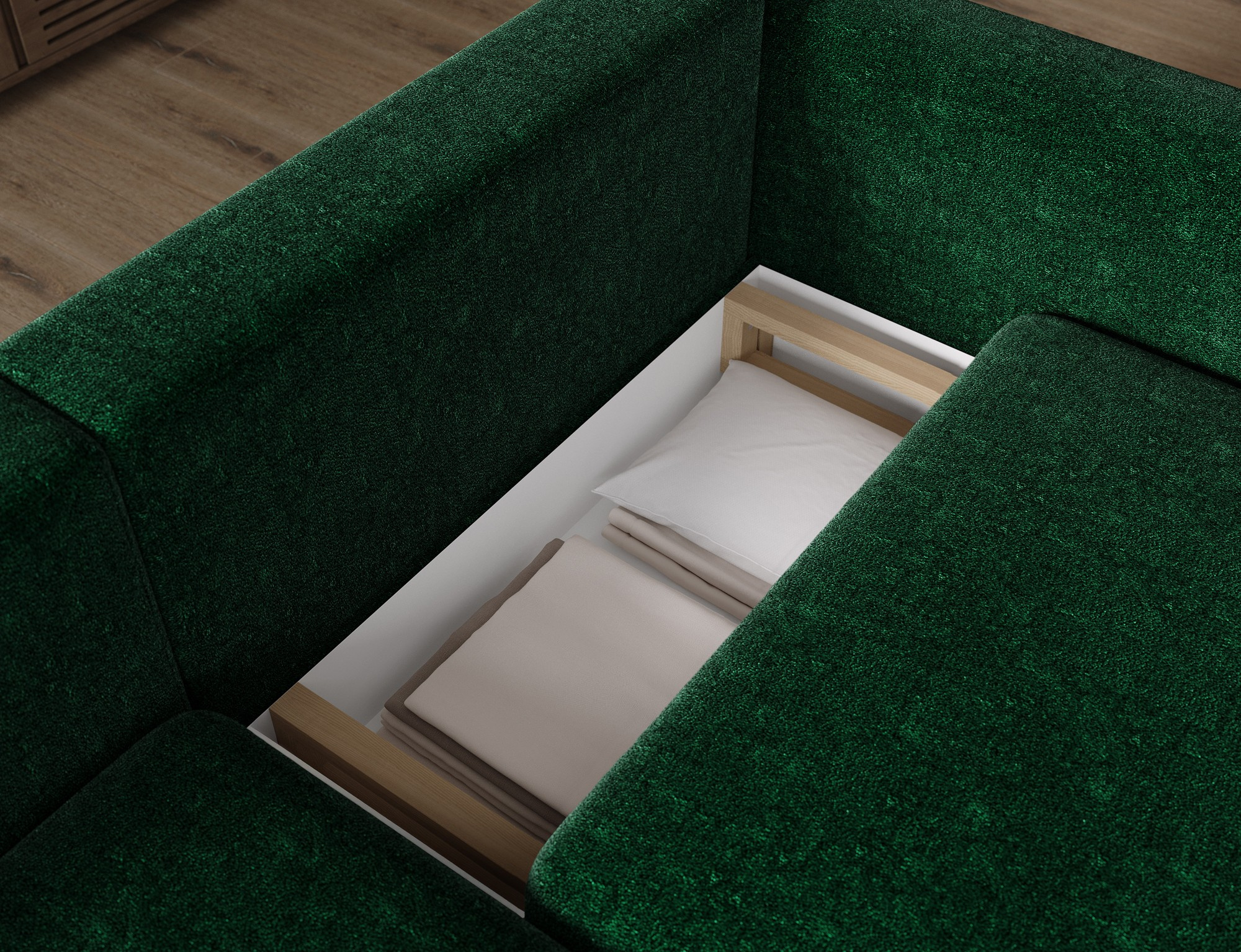 The Acossta corner sofa is a modern and functional upholstered piece designed for everyday comfort and long-lasting durability, making it perfect for both living rooms and relaxation areas. With overall dimensions of 244 × 154 × 95 cm and a weight of 121.7 kg, this model stands out for its solid construction and ergonomically shaped form that ensures a high level of seating and lounging comfort. The seat comfort is provided by a combination of Type B wave springs and HR3030 high-resilience foam, while the backrest filled with T2315 polyurethane foam offers stable and comfortable back support. The Acossta corner sofa features a sleeping function with a surface of 49 × 200 cm, making it a practical solution for occasional overnight guests, and the DL assisted unfolding mechanism with an automatic leg allows for quick and smooth conversion. An additional advantage is the integrated bedding storage compartment, which enhances functionality and provides convenient storage, making the Acossta corner sofa an ideal choice for those seeking a balance of design, comfort, and practical features.