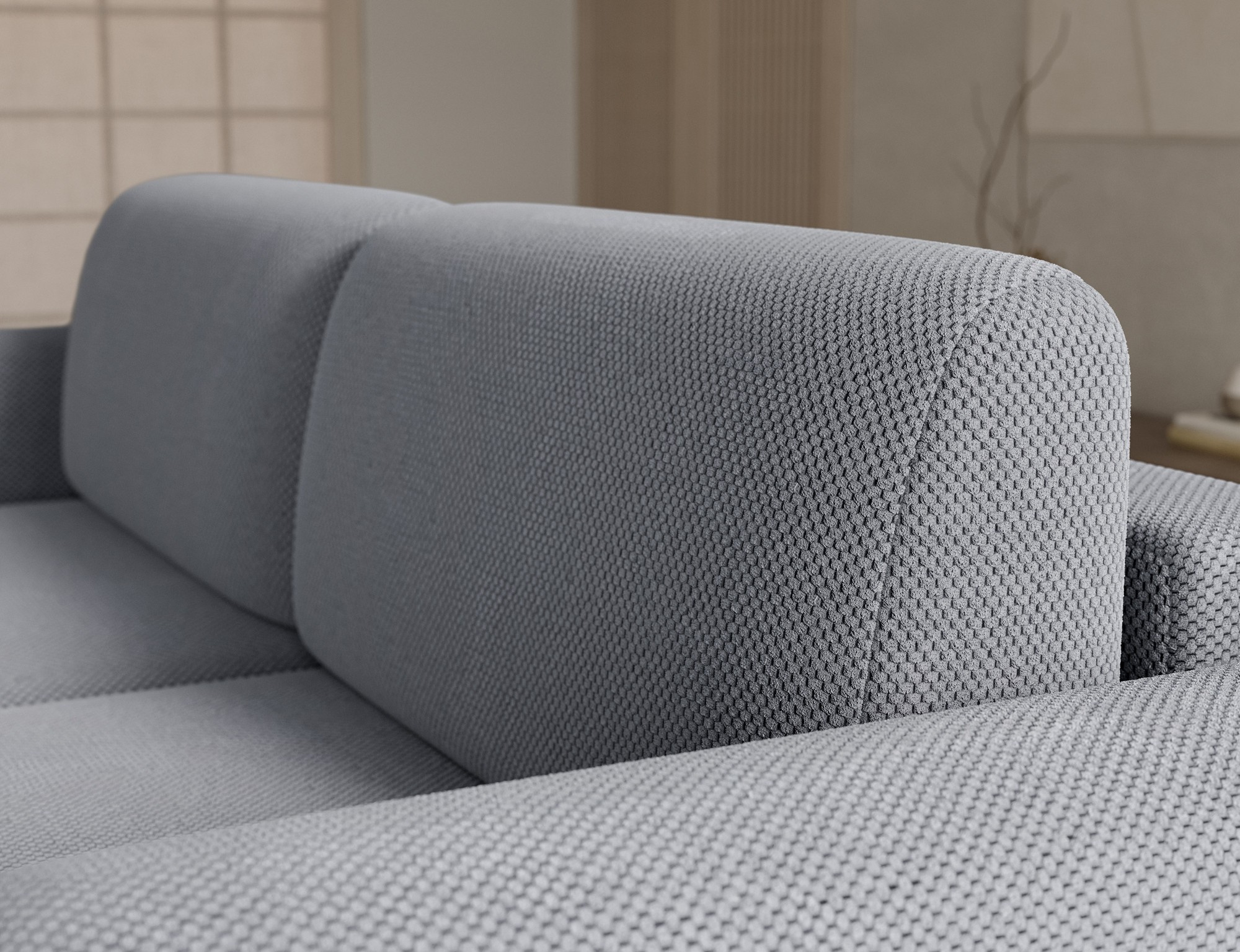 The Acossta corner sofa is a modern and functional upholstered piece designed for everyday comfort and long-lasting durability, making it perfect for both living rooms and relaxation areas. With overall dimensions of 244 × 154 × 95 cm and a weight of 121.7 kg, this model stands out for its solid construction and ergonomically shaped form that ensures a high level of seating and lounging comfort. The seat comfort is provided by a combination of Type B wave springs and HR3030 high-resilience foam, while the backrest filled with T2315 polyurethane foam offers stable and comfortable back support. The Acossta corner sofa features a sleeping function with a surface of 49 × 200 cm, making it a practical solution for occasional overnight guests, and the DL assisted unfolding mechanism with an automatic leg allows for quick and smooth conversion. An additional advantage is the integrated bedding storage compartment, which enhances functionality and provides convenient storage, making the Acossta corner sofa an ideal choice for those seeking a balance of design, comfort, and practical features.