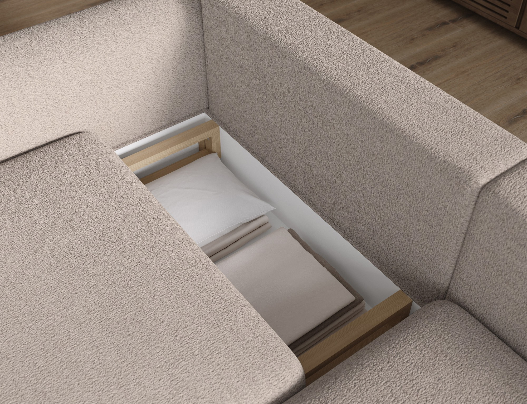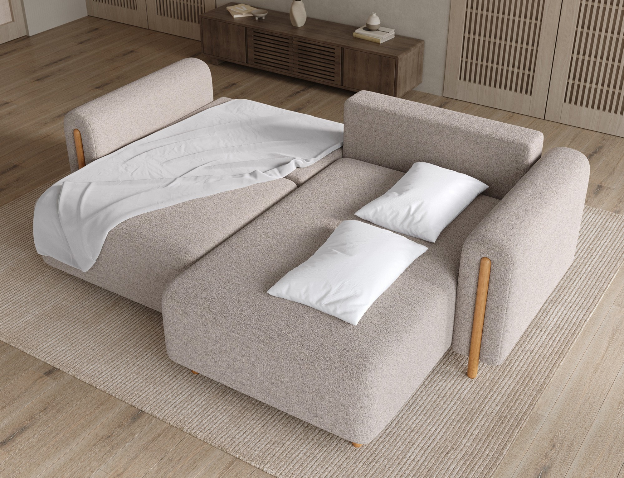 The Acossta corner sofa is a modern and functional upholstered piece designed for everyday comfort and long-lasting durability, making it perfect for both living rooms and relaxation areas. With overall dimensions of 244 × 154 × 95 cm and a weight of 121.7 kg, this model stands out for its solid construction and ergonomically shaped form that ensures a high level of seating and lounging comfort. The seat comfort is provided by a combination of Type B wave springs and HR3030 high-resilience foam, while the backrest filled with T2315 polyurethane foam offers stable and comfortable back support. The Acossta corner sofa features a sleeping function with a surface of 49 × 200 cm, making it a practical solution for occasional overnight guests, and the DL assisted unfolding mechanism with an automatic leg allows for quick and smooth conversion. An additional advantage is the integrated bedding storage compartment, which enhances functionality and provides convenient storage, making the Acossta corner sofa an ideal choice for those seeking a balance of design, comfort, and practical features.