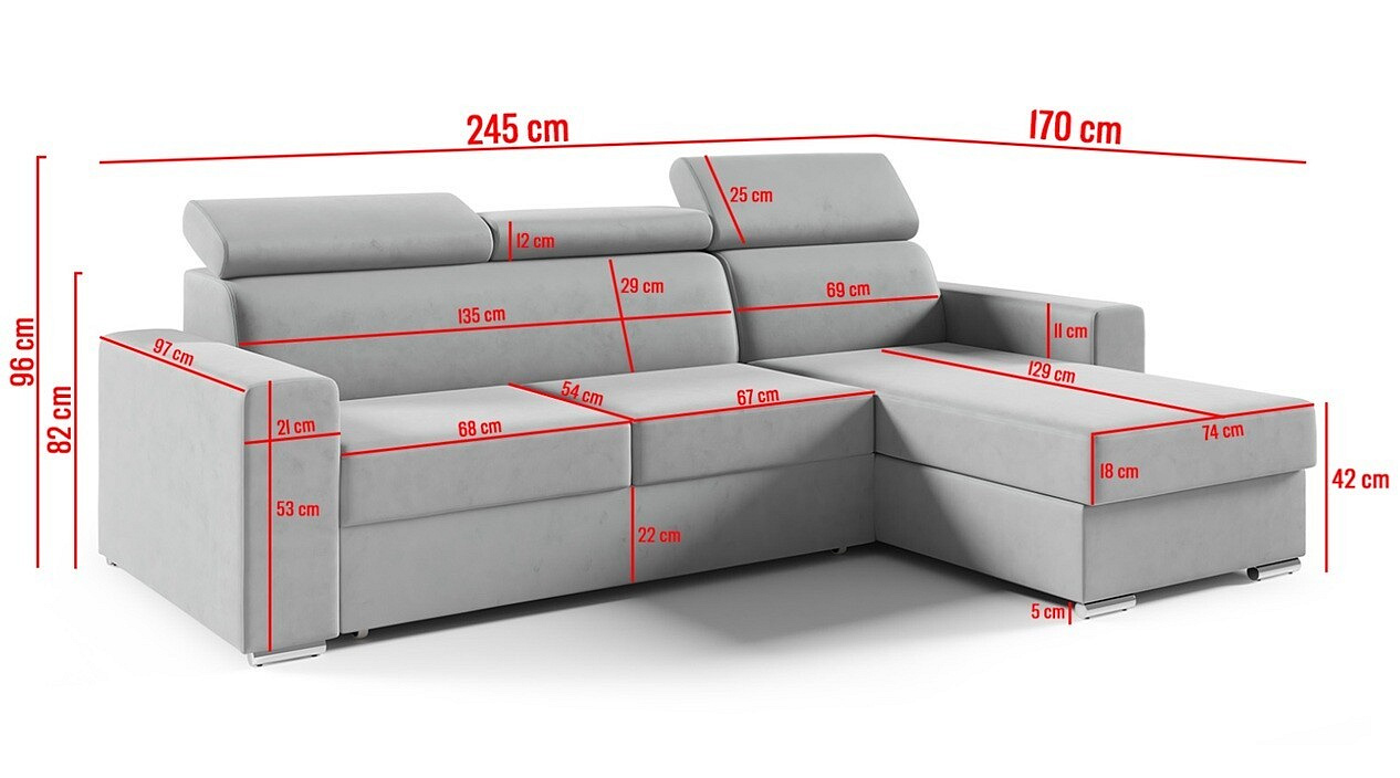 Az ADELKA sarokülőgarnitúra jobb- és baloldali változatban is elérhető, ami lehetővé teszi, hogy pontosan az Ön belső terének elrendezéséhez igazítsa. 245 x 170 cm-es méreteivel és 300 kg maximális teherbírásával ideális választás családok és egyének számára, akik tágas és tartós megoldást keresnek.
