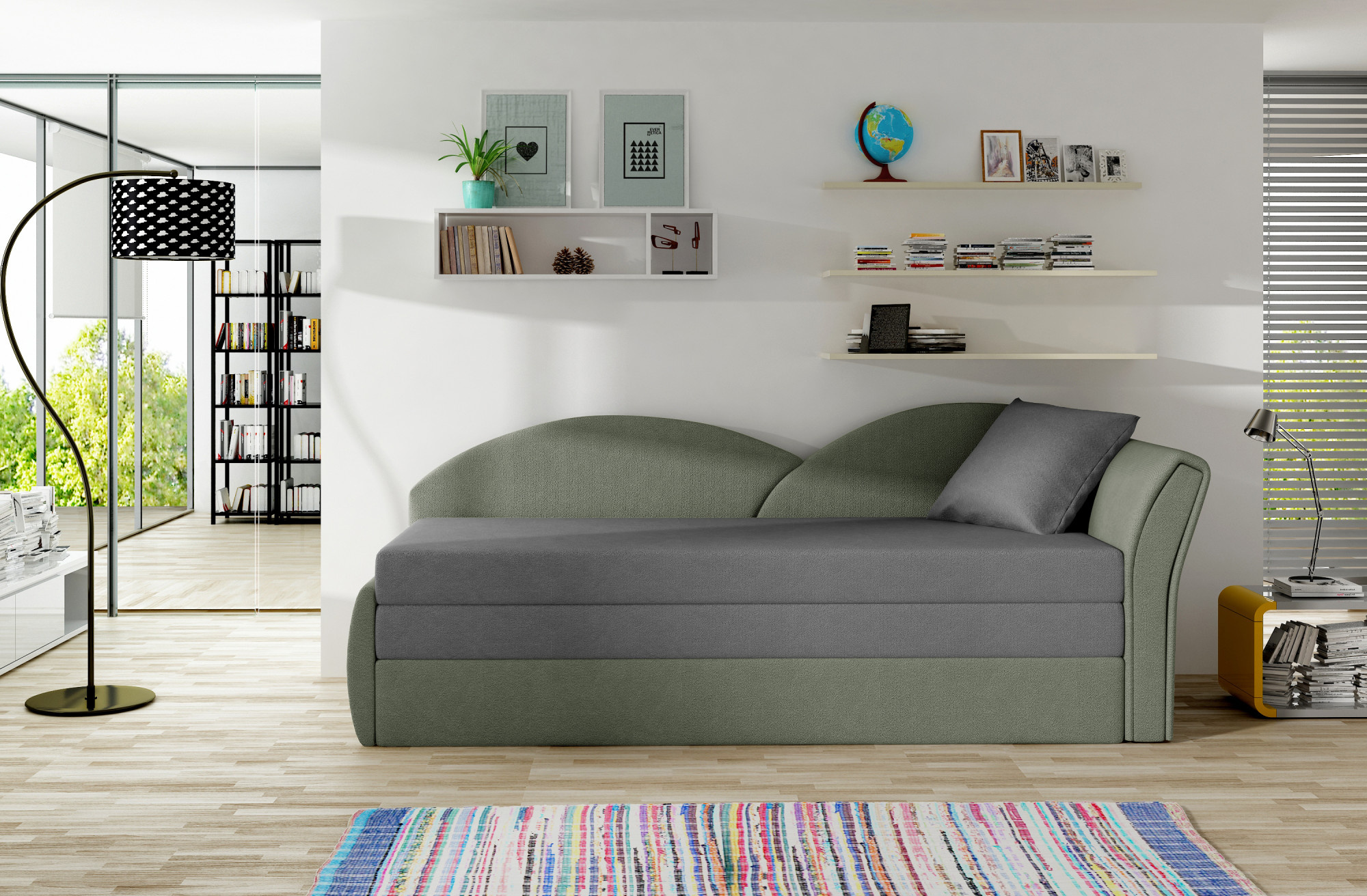 Aga is a maximum comfortable and functional sofa with dimensions of 218 x 80 x 77 cm, which is ideal as a piece of furniture in a children's room. The original shape of the backrest, as well as the seat - is available in both a solid shade and a patterned finish. Such material and color options will make the children's room can be arranged according to individual tastes. The sofa not only provides ample space for daytime rest, but also for nighttime rest. The furniture's folding function allows you to adjust the sofa to your current needs. We are talking about the sliding bottom, which transforms it into a bed with dimensions of 180 x 150 cm. For maximum comfort, Aga is equipped with a seat made of T25 foam, which provides flexibility, softness, comfort and safety by supporting the body properly. Aga will be a perfectly cozy piece of furniture, as well as an original decoration of any child's room.