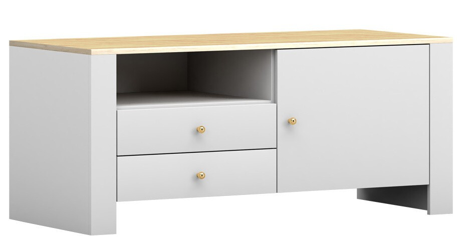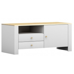 AGAWWA RTV 05 TV komód, Fehér/Hikora Tölgy