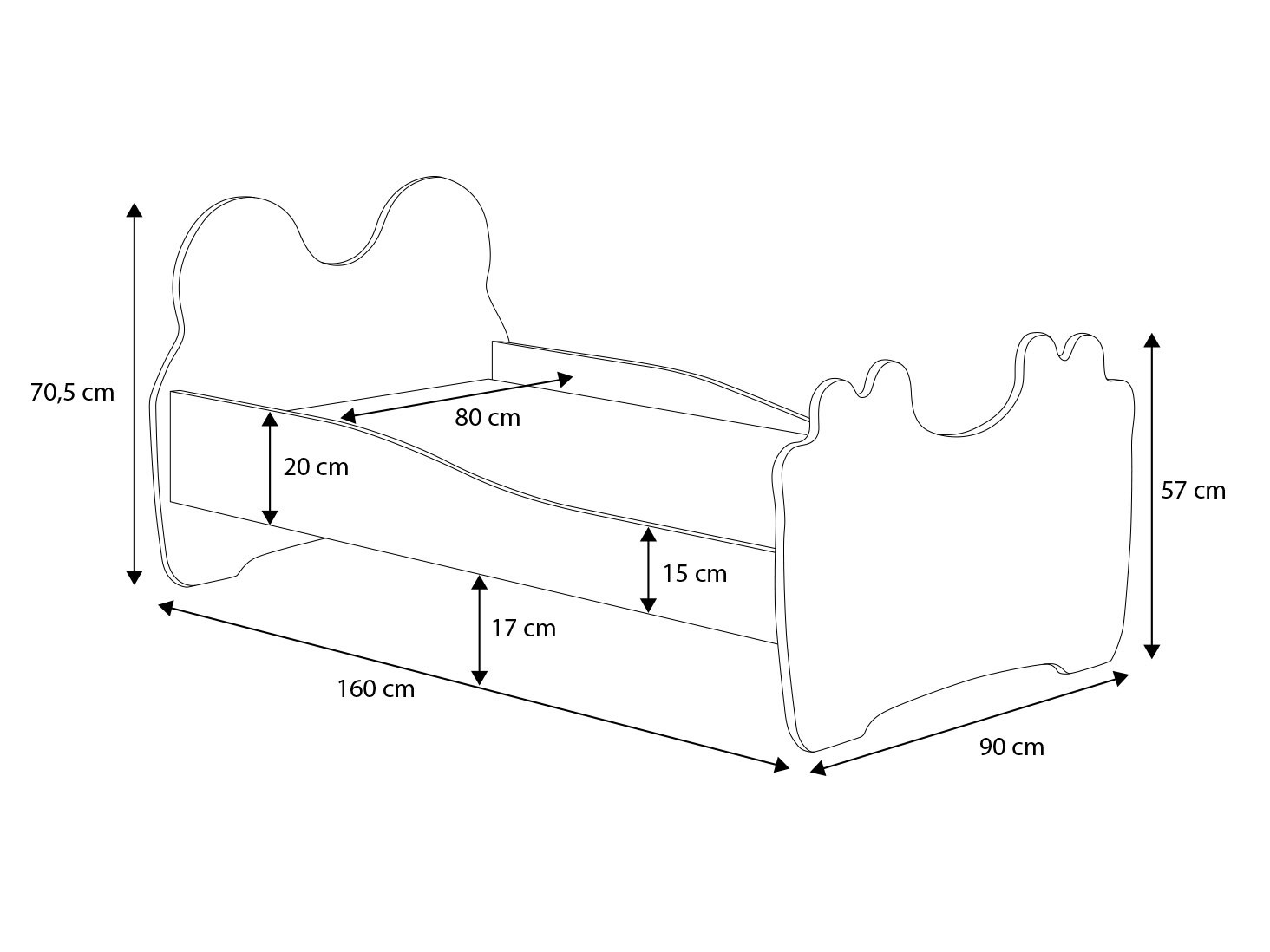 A BEAR kollekció egyszemélyes ágya ideális választás a legkisebbek számára. A csodálatos medve alakú ágy tökéletesen illik mind a fiú, mind a lány szobájába. A gyártási folyamat során környezetbarát vízbázisú festékeket használtak, amelyek biztonságosak és ellenállnak a mechanikai sérüléseknek. Ezenkívül az ágynak nincsenek éles sarkai, és a grafika lamináttal van védve. További előnye a cipzáras, levehető matrac huzat, amely könnyen levehető és mosható. Az ágy kiegészíthető egy praktikus ágyneműtartó fiókkal.