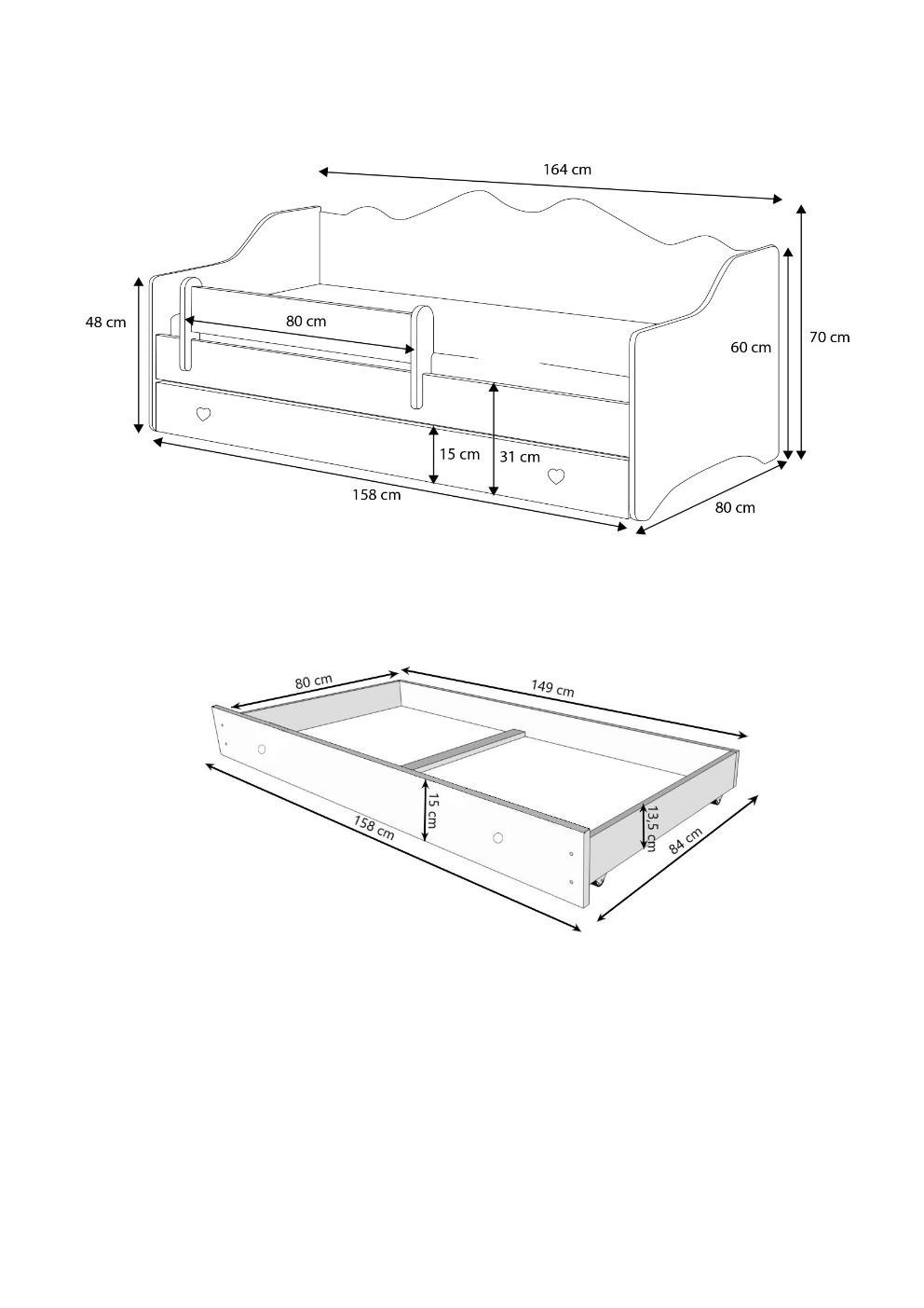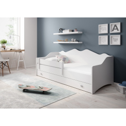 Az EMKA kollekció egyszemélyes ágya egyszerű formával, matt fehér színben remekül illik ifjúsági vagy gyerekszoba belső terébe. A készlet része egy tágas és funkcionális, kerekeken guruló fiók, valamint egy kényelmes habszivacs matrac levehető huzattal. Továbbá, ha további alvóhelyre van szüksége, javasoljuk, hogy ismerkedjen meg az EMKA II modellel, amely alvó funkcióval ellátott fiókkal rendelkezik.