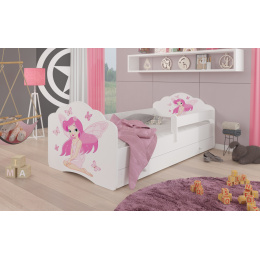 Ágy matraccal, leesésgátlóval és fiókkal CASIMO LÁNY SZÁRNYAKKAL 140x70 Fehér