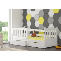 A LENA egyszemélyes ágy remekül illik egy fiú vagy lány szobájának belső terébe. A modellt kiegészítették egy védőkorláttal, amely biztosítja a biztonságot alvás közben, valamint tágas és funkcionális ágyneműtartó fiókokkal. A készlet tartalmaz egy tartós keretet és egy habszivacs matracot pamut huzattal, cipzárral.
