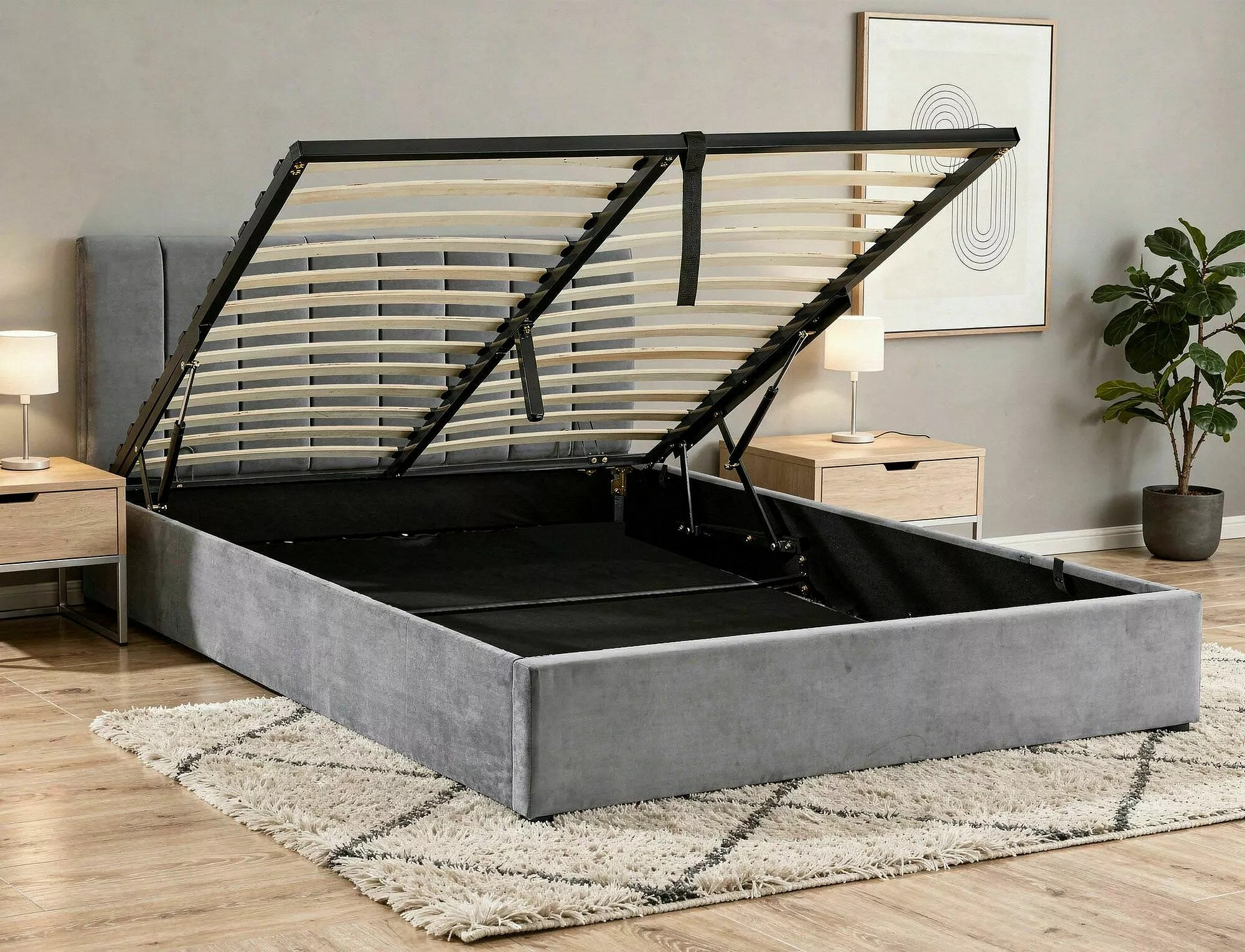 Ágy tárolóval MONTREAL Velvet, 140x200 cm, szürke Aksamit 192