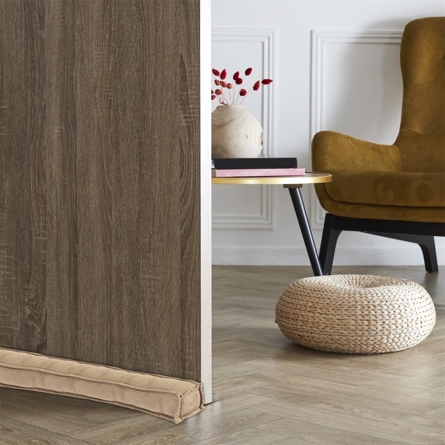 Henger, ajtóütköző, amely nemcsak megállítja az ajtóinkat, hanem megakadályozza azok becsapódását is. Az ajtó alá helyezett ék szintén segít megakadályozni az ajtó aláfújását.