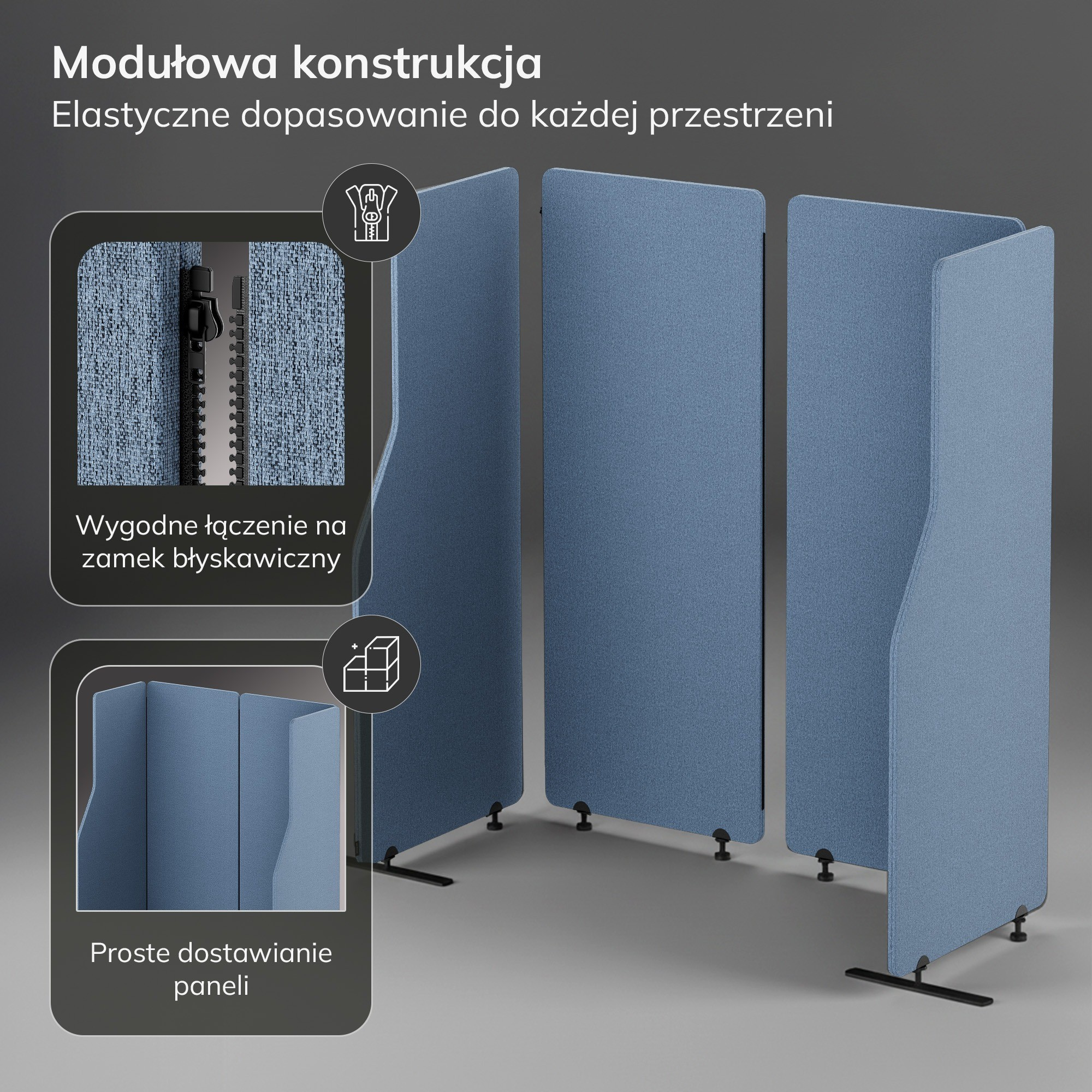 Moduláris jelleg a SADIE akusztikus fal lehetővé teszi a panelek egyszerű összekapcsolását praktikus cipzárral. Az összeszerelés intuitív és gyors, nem igényel speciális szerszámokat. Különböző árnyalatú falakat kombinálhat, így egyedi belső teret hozhat létre. A panelek átrendezése vagy áthelyezése egy másik helyiségbe gyerekjáték.