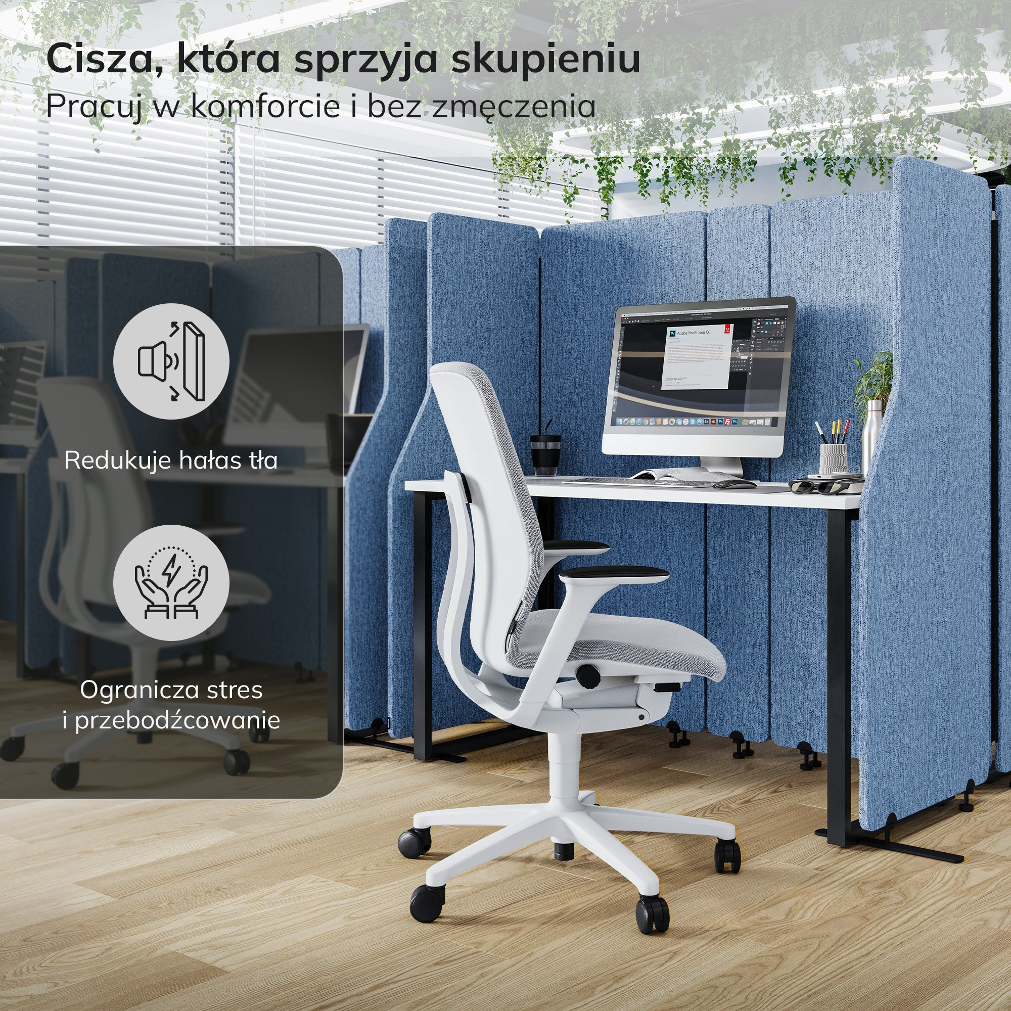 - Moduláris design: A panelek könnyű összekapcsolása cipzárral lehetővé teszi a rugalmas elrendezést és a tér igényeidhez való igazítását. Hozzon létre egyéni munkasarkot, válassza le a tárgyalót, vagy hozzon létre egy nyugodt zónát a pihenéshez.