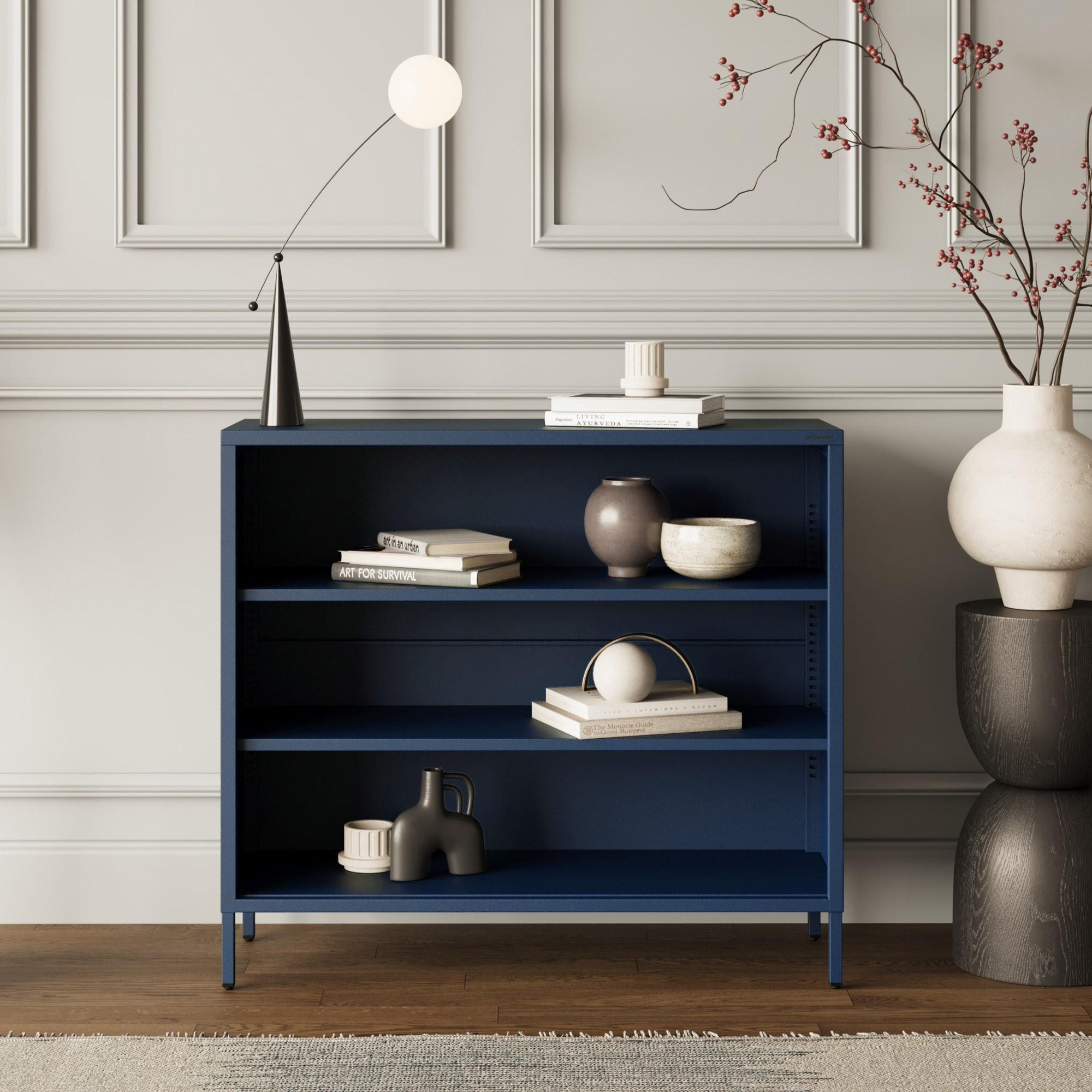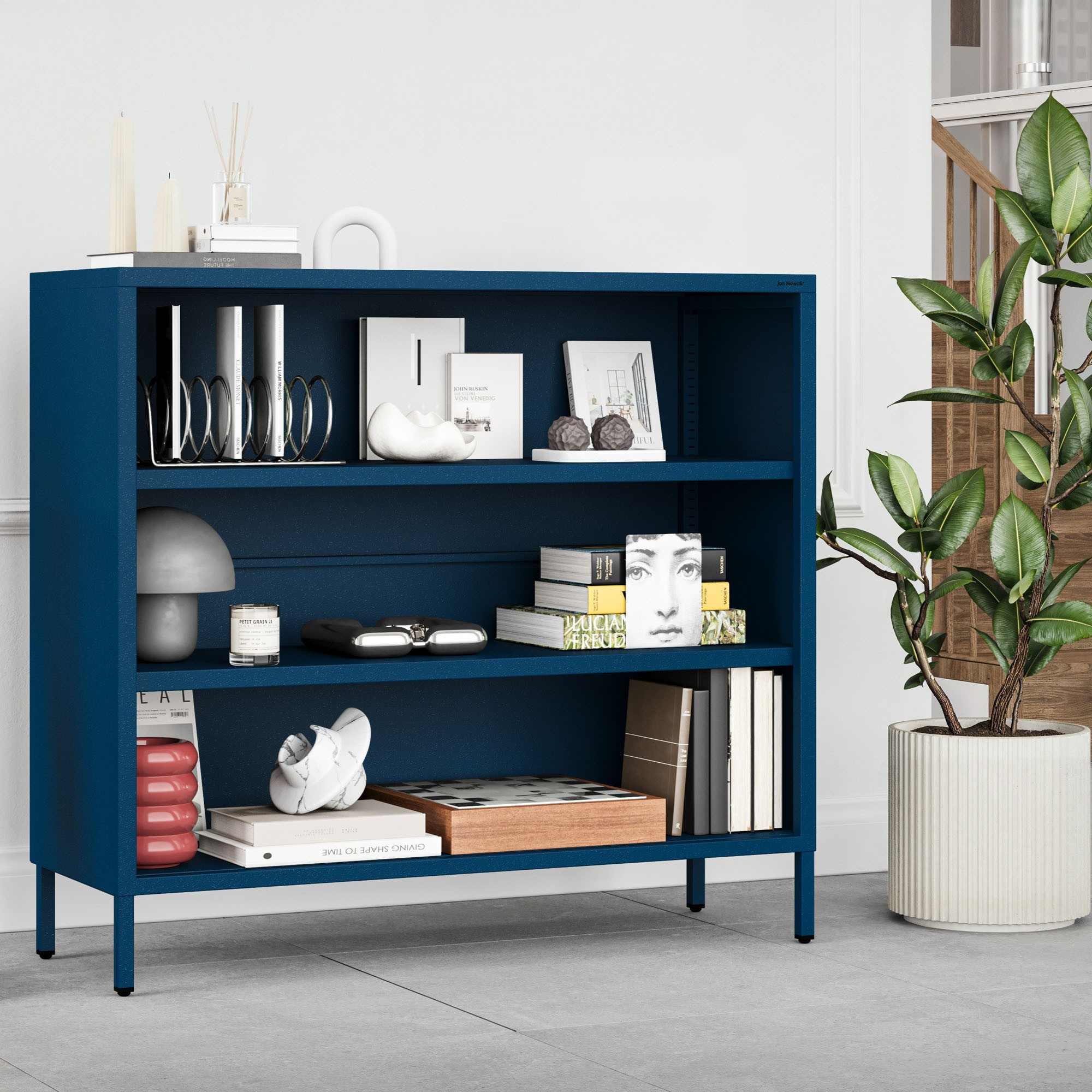 Az alacsony LUCA polc a Modern kollekcióból nem csak a megjelenésről szól. Fém szerkezete 0,6 mm vastagságú elemekből magas szilárdságot és stabilitást biztosít. Nyugodtan elhelyezhet rajta könyveket, dekorációkat és nehezebb tárgyakat is. A LUCA úgy van tervezve, hogy hosszú évekig szolgáljon.