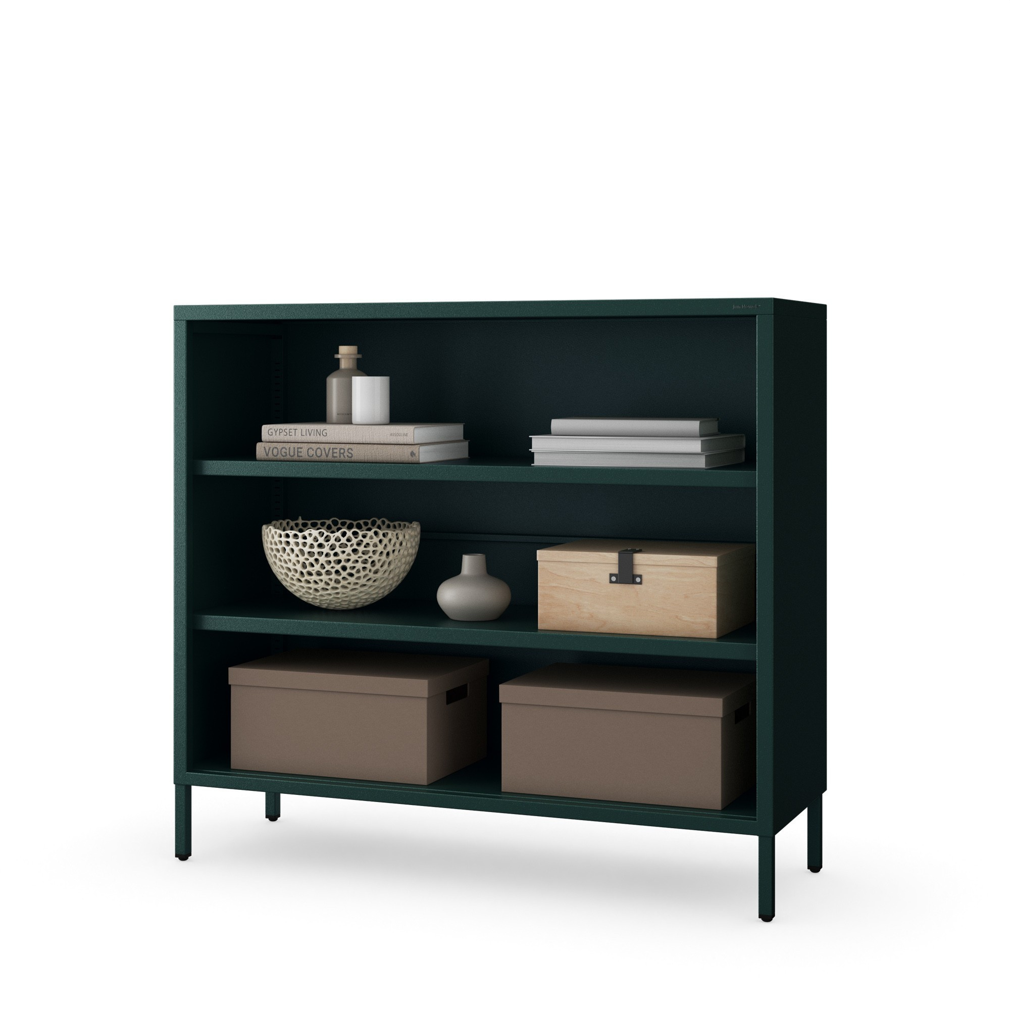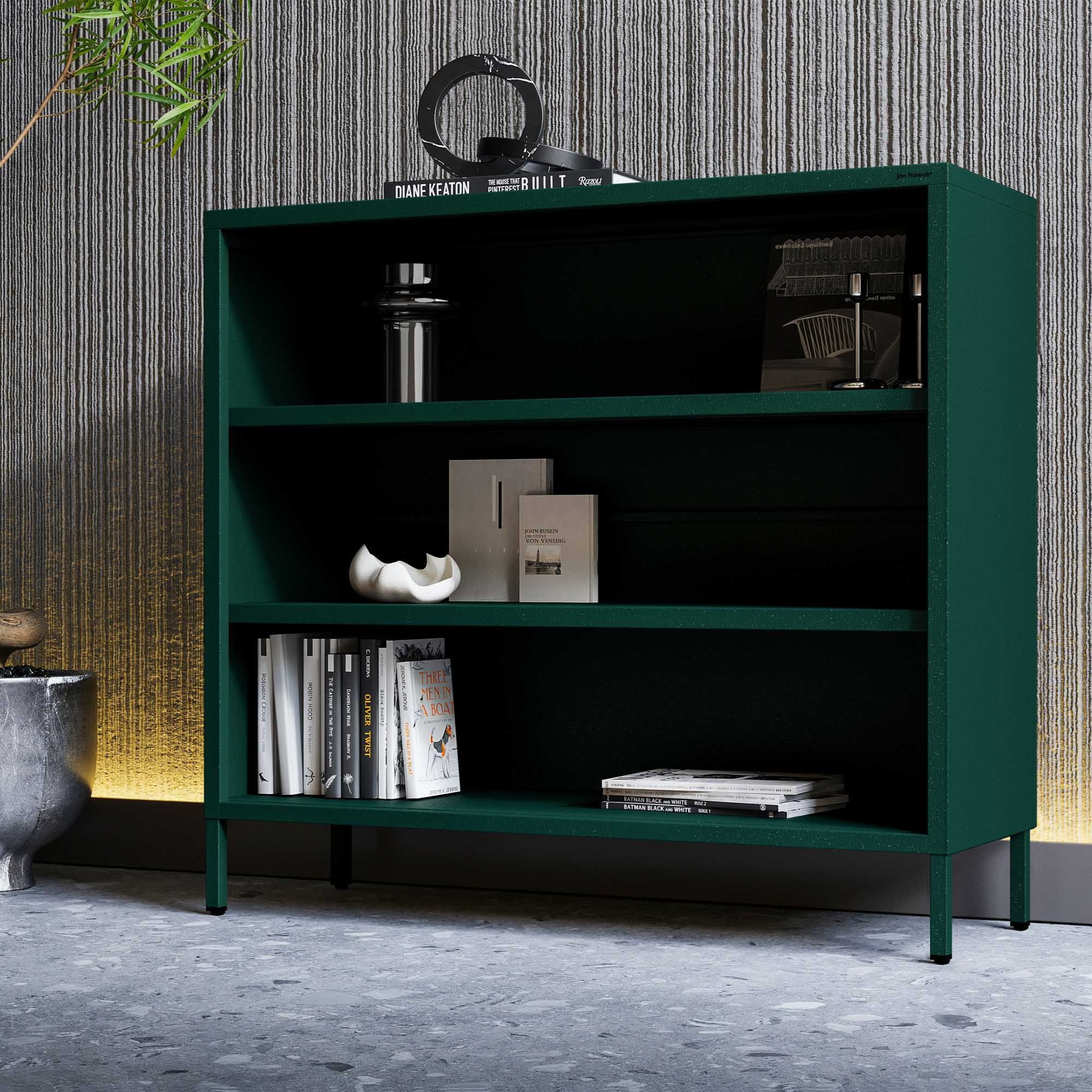Alacsony fém polc palackzöld Modern LUCA, 1000 x 900 x 350 mm