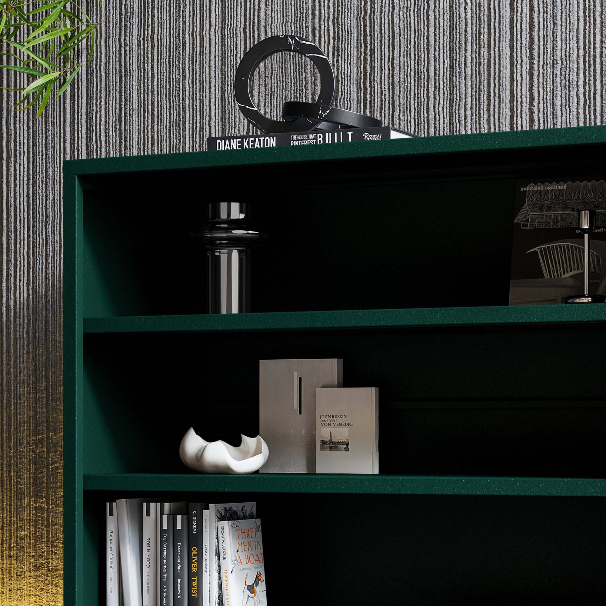 Az eredeti palackzöld árnyalat a csillogó felülettel kombinálva teljesen egyedi hatást kelt, és a bútort önmagában is dekorációvá teszi.