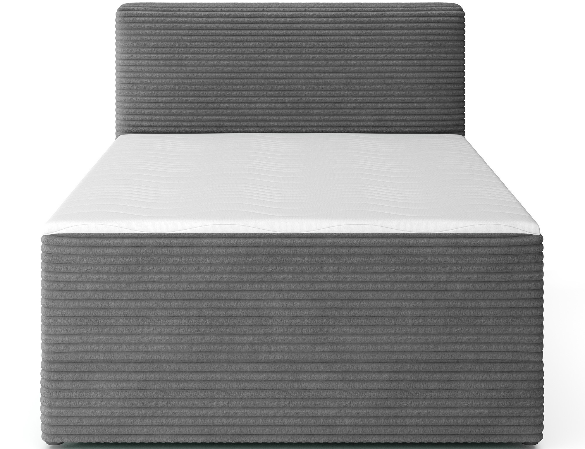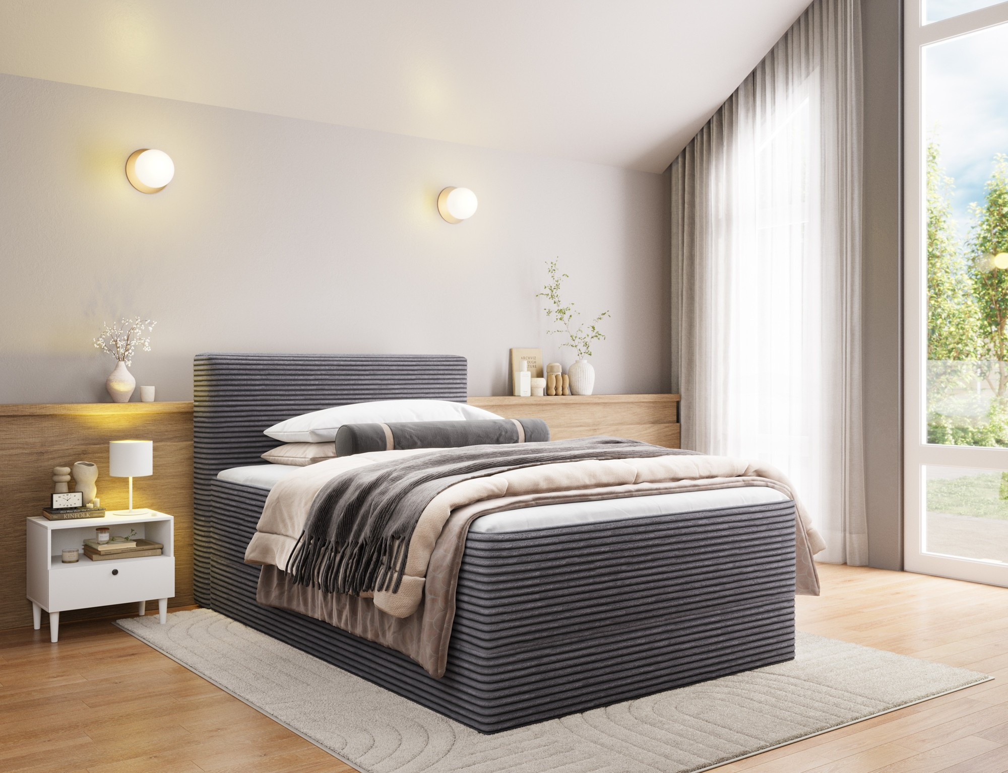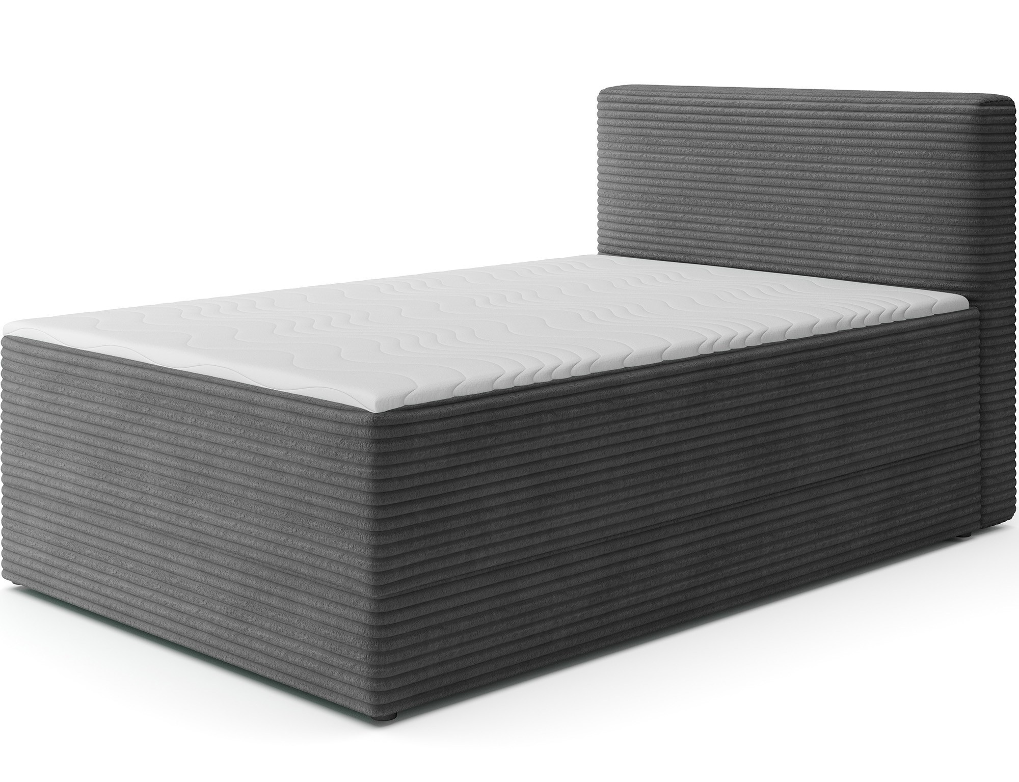 The Alamito boxspring bed is a functional and comfortable continental bed, designed for restful sleep and everyday use, making it an excellent practical choice for the bedroom. Its solid construction, with a height of 108 cm and a length of 215 cm, ensures stability and proper support, while carefully selected materials contribute to durability and comfort. The headboard is filled with 5 cm thick T2130 foam, while the base is made from a combination of T2130 foam, a bonell spring system, and T2540 foam, guaranteeing elasticity and sleeping comfort. The bed is complemented by a 5 cm thick topper, which enhances comfort and body adaptation. It features a practical bedding storage compartment that makes organization easier and helps optimize bedroom space. The structure includes a bonell spring mattress permanently mounted on a frame made of solid wood and particle board, providing a sturdy base and long-lasting durability. The Alamito model is available in two sizes: 120x200 cm and 140x200 cm, making it an ideal choice for both smaller and medium-sized bedrooms, combining aesthetics, functionality, and a high standard of sleep.
