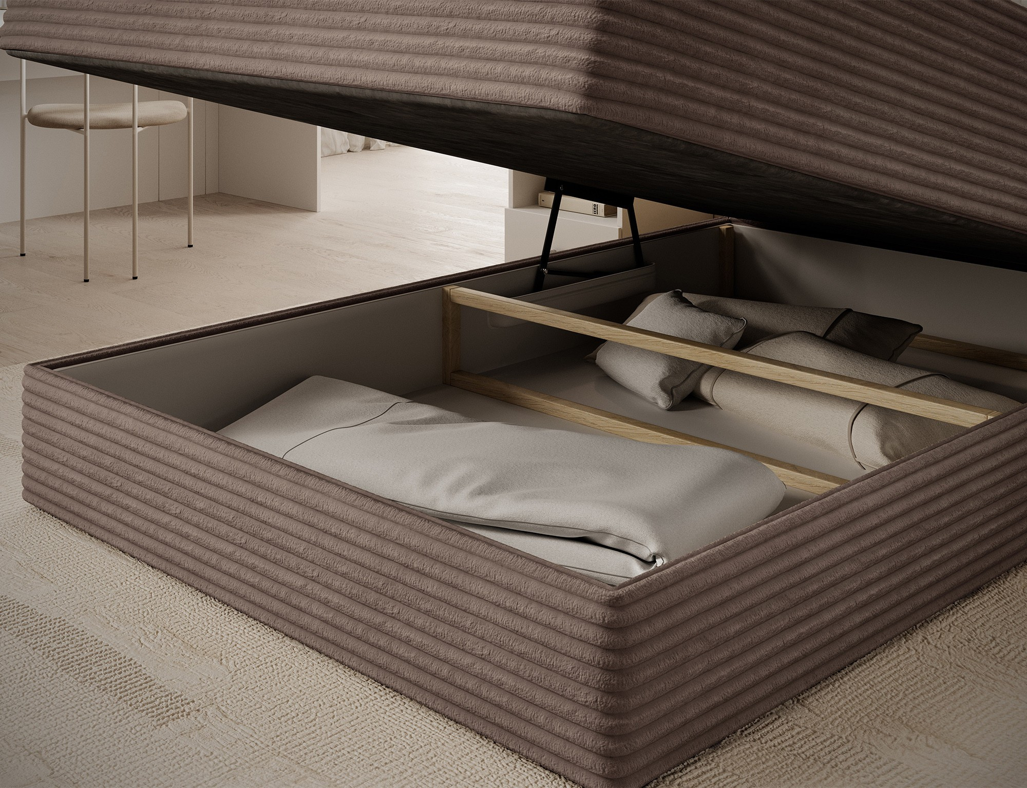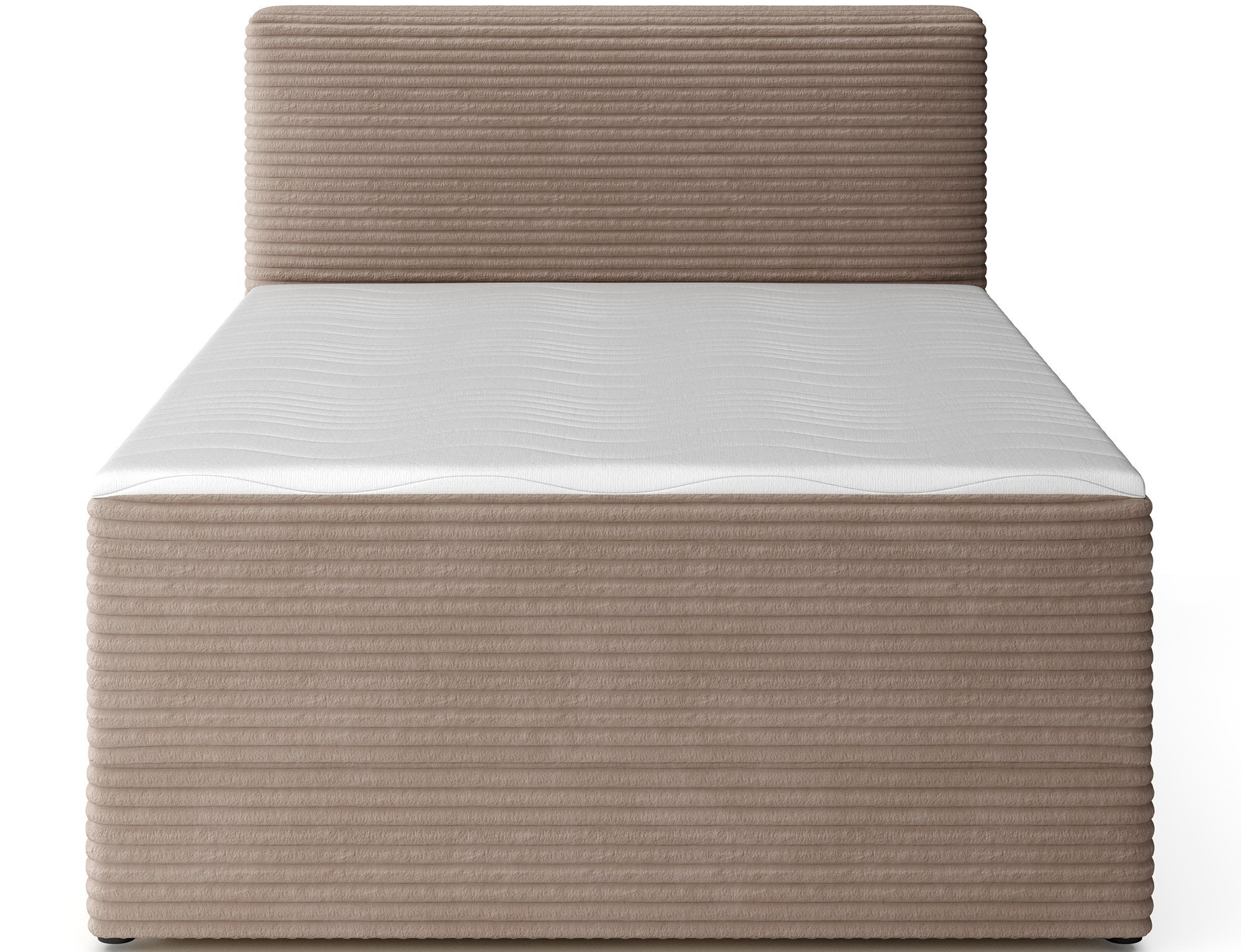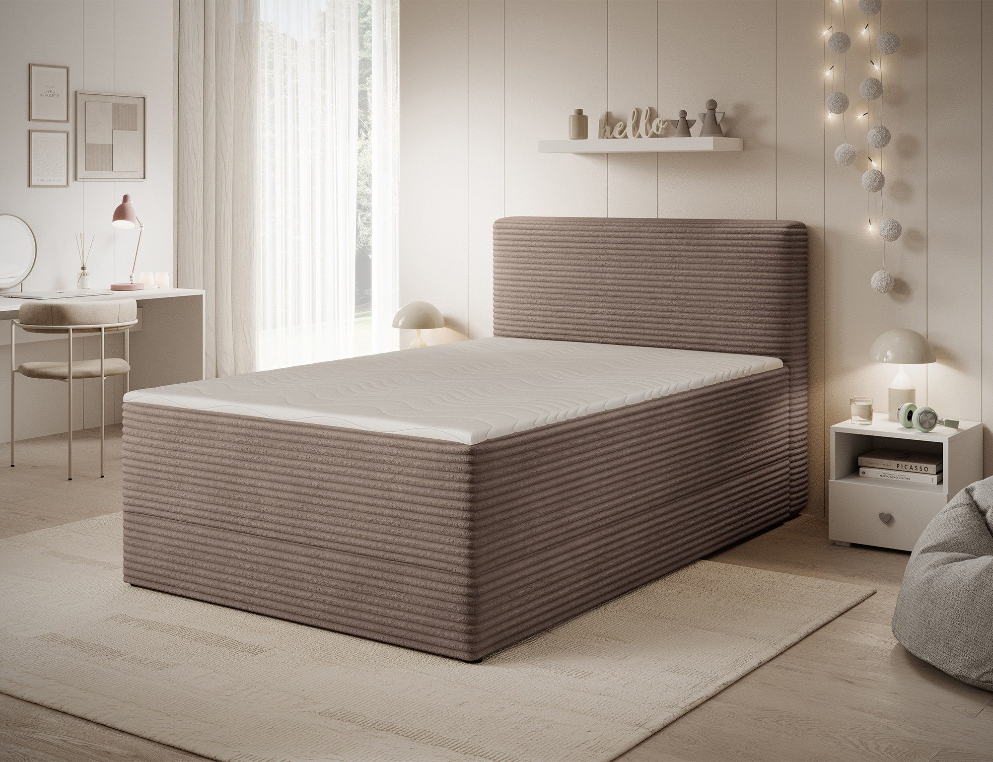 The Alamito boxspring bed is a functional and comfortable continental bed, designed for restful sleep and everyday use, making it an excellent practical choice for the bedroom. Its solid construction, with a height of 108 cm and a length of 215 cm, ensures stability and proper support, while carefully selected materials contribute to durability and comfort. The headboard is filled with 5 cm thick T2130 foam, while the base is made from a combination of T2130 foam, a bonell spring system, and T2540 foam, guaranteeing elasticity and sleeping comfort. The bed is complemented by a 5 cm thick topper, which enhances comfort and body adaptation. It features a practical bedding storage compartment that makes organization easier and helps optimize bedroom space. The structure includes a bonell spring mattress permanently mounted on a frame made of solid wood and particle board, providing a sturdy base and long-lasting durability. The Alamito model is available in two sizes: 120x200 cm and 140x200 cm, making it an ideal choice for both smaller and medium-sized bedrooms, combining aesthetics, functionality, and a high standard of sleep.