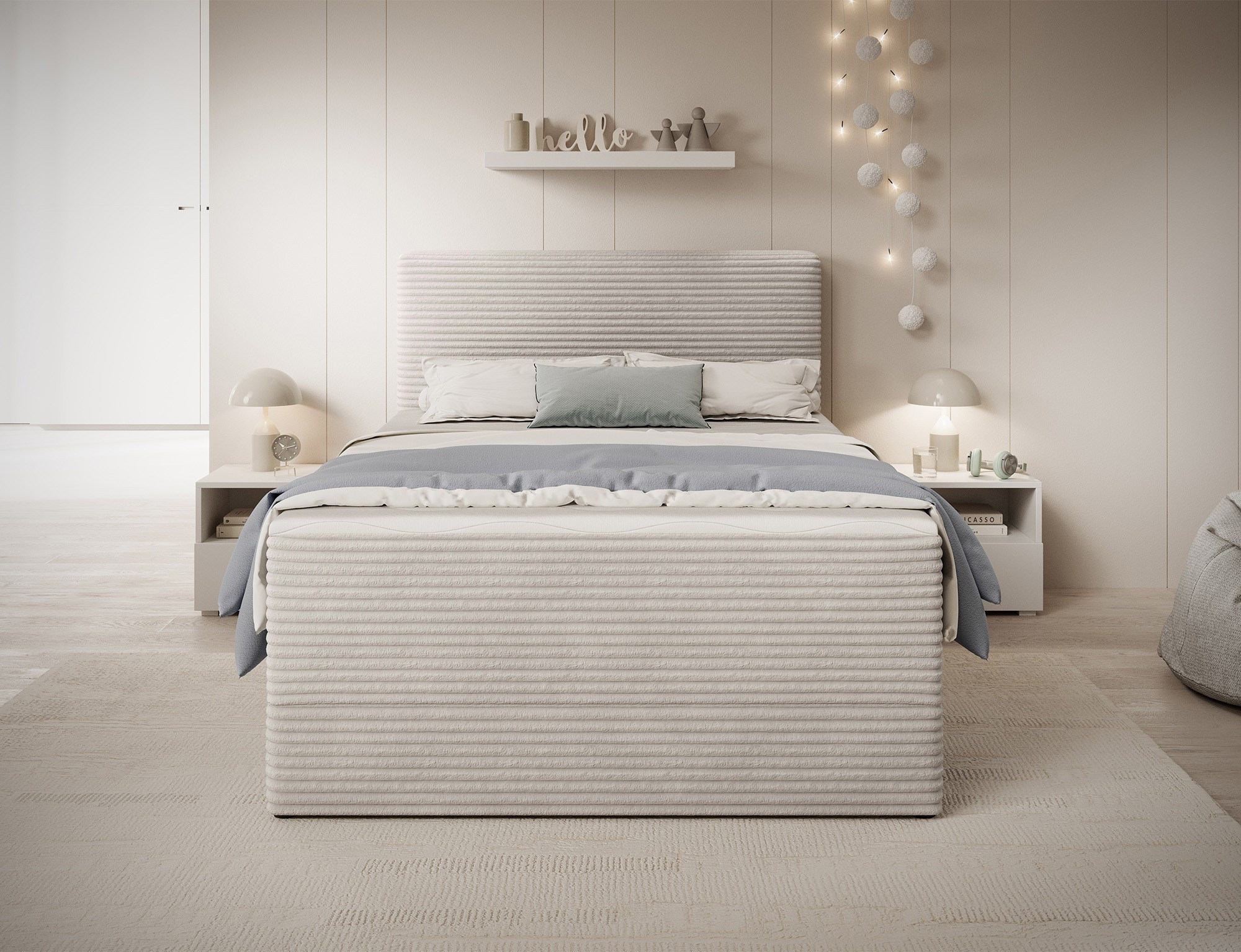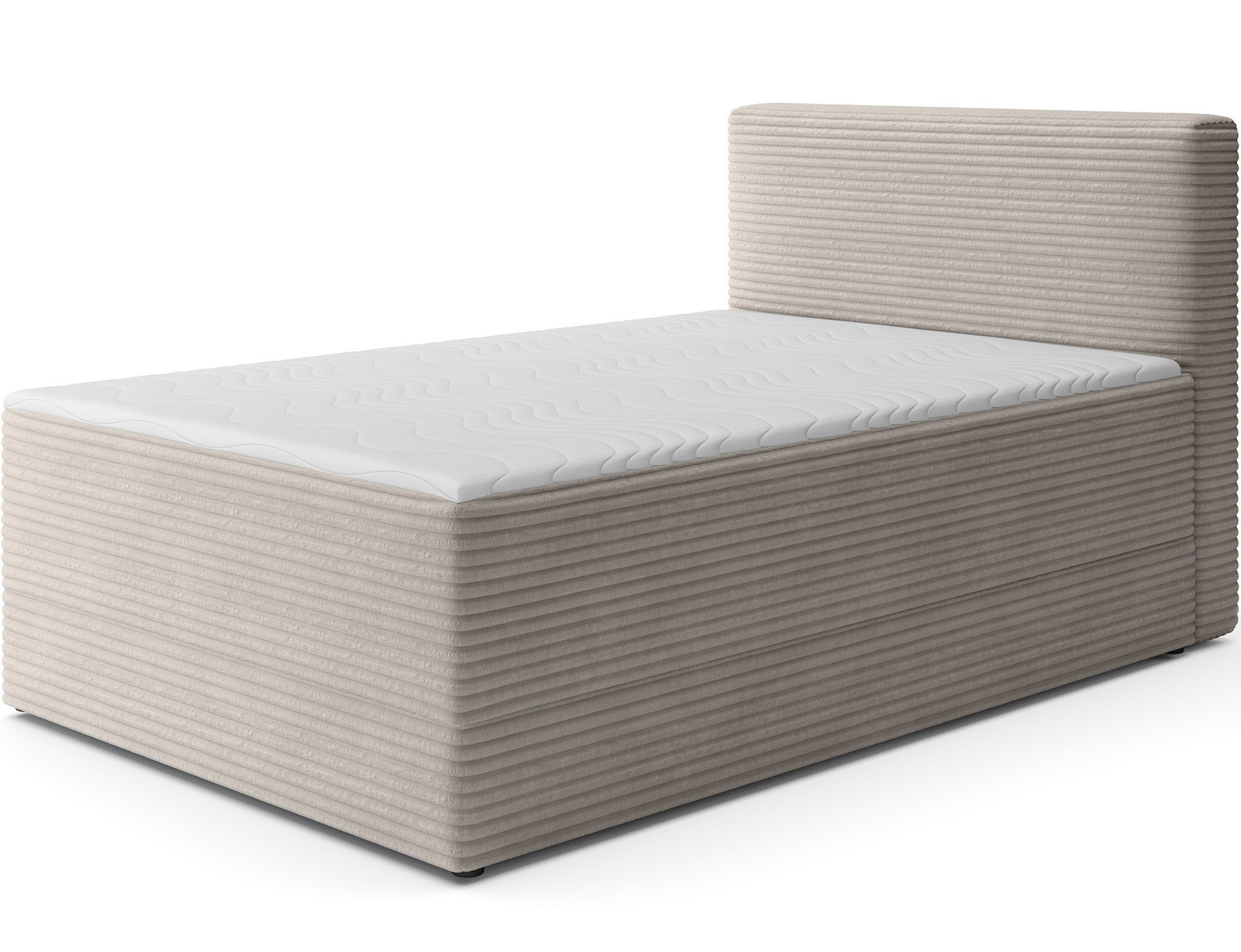 The Alamito boxspring bed is a functional and comfortable continental bed, designed for restful sleep and everyday use, making it an excellent practical choice for the bedroom. Its solid construction, with a height of 108 cm and a length of 215 cm, ensures stability and proper support, while carefully selected materials contribute to durability and comfort. The headboard is filled with 5 cm thick T2130 foam, while the base is made from a combination of T2130 foam, a bonell spring system, and T2540 foam, guaranteeing elasticity and sleeping comfort. The bed is complemented by a 5 cm thick topper, which enhances comfort and body adaptation. It features a practical bedding storage compartment that makes organization easier and helps optimize bedroom space. The structure includes a bonell spring mattress permanently mounted on a frame made of solid wood and particle board, providing a sturdy base and long-lasting durability. The Alamito model is available in two sizes: 120x200 cm and 140x200 cm, making it an ideal choice for both smaller and medium-sized bedrooms, combining aesthetics, functionality, and a high standard of sleep.