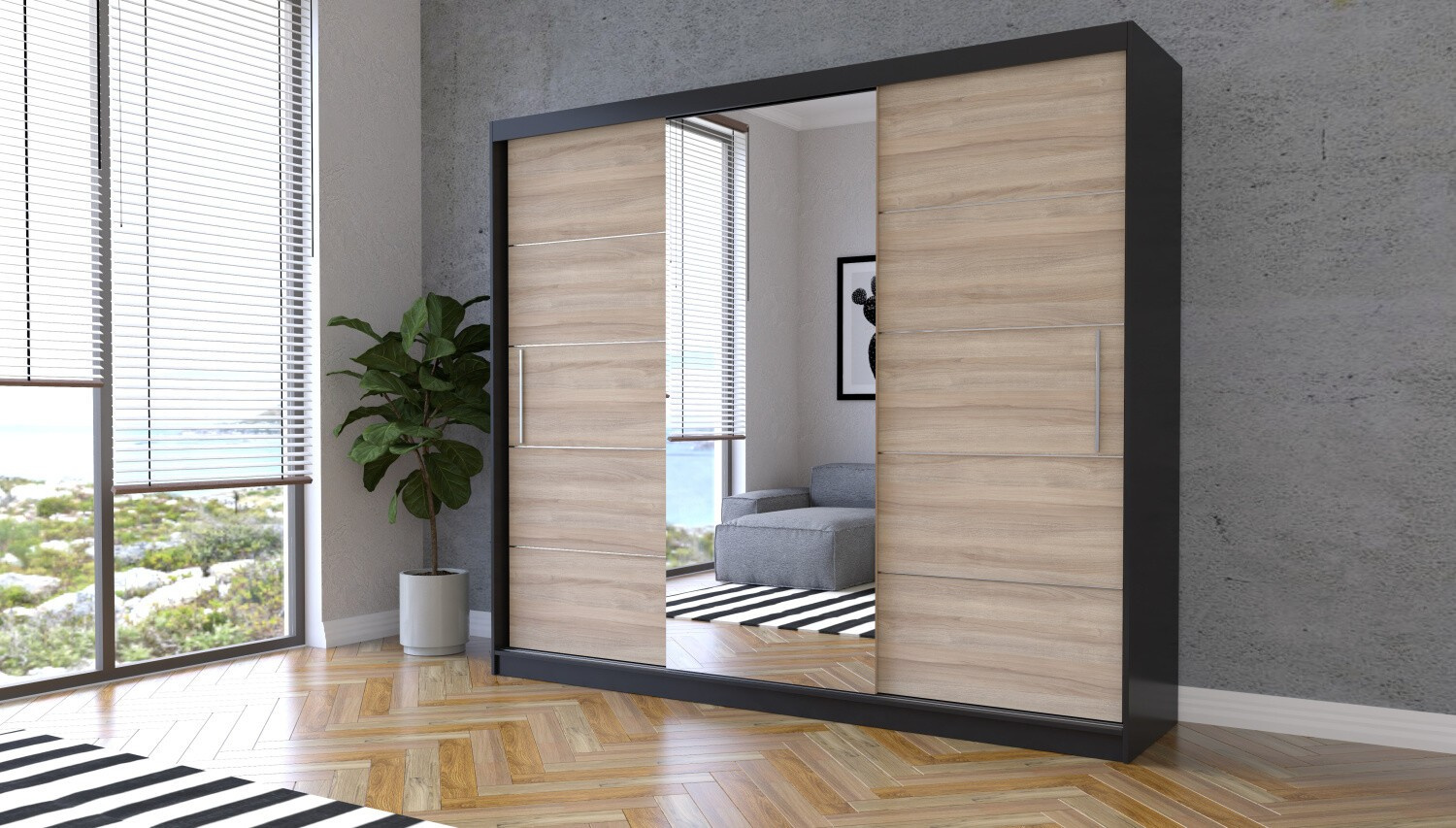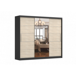 ALBA gardróbszekrény tükörrel, Fekete/Sonoma