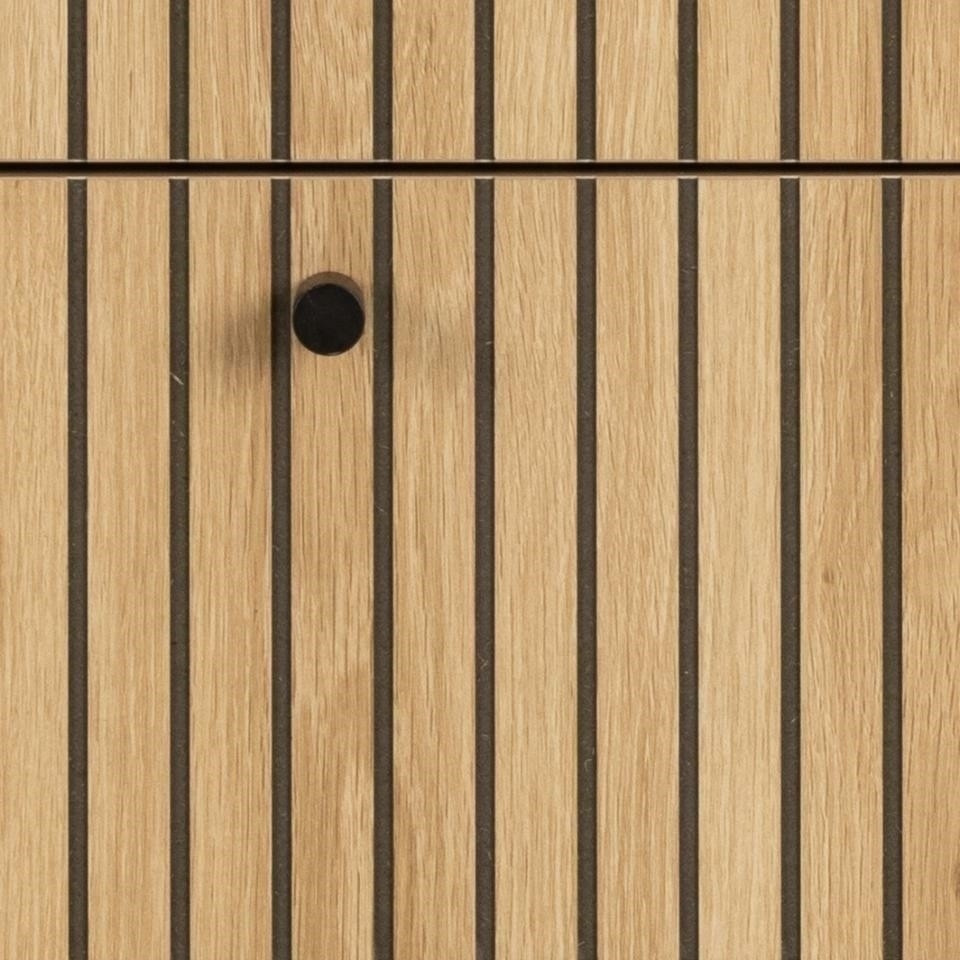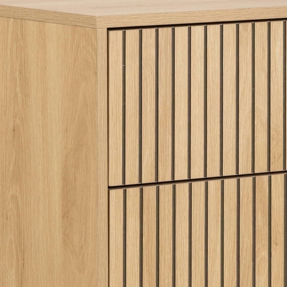 A tölgyfa megjelenésű és lamellás előlapú komód képes magára vonzani a figyelmet.