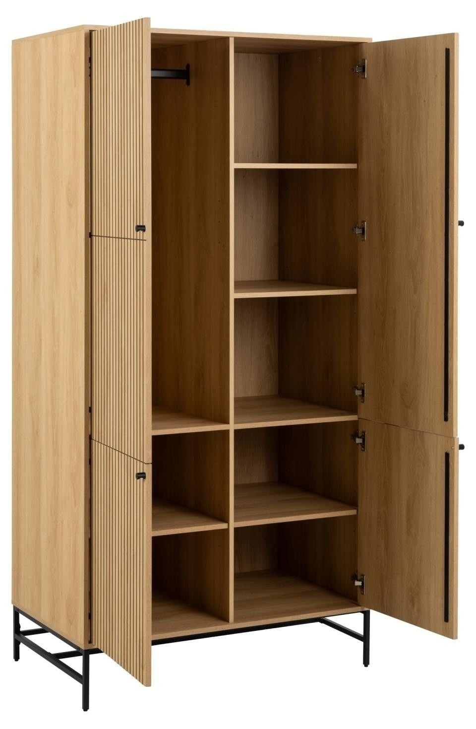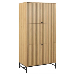 A tölgy megjelenésű és lamellás előlapú szekrény tudja, hogyan kell felhívni magára a figyelmet. A lamellás ajtóknak köszönhetően jól kiegyensúlyozott megjelenése van, ami érdekes megjelenést kölcsönöz neki. 6 állítható polccal és ruharúddal felszerelve rengeteg tárolóhelyet kínál, és a könnyen karbantartható felület növeli a praktikusságát. Főbb jellemzők: 4 ajtós szekrény lamellás előlapokkal. Felszerelve 6 állítható polccal és 1 ruharúddal. Könnyen karbantartható felület tölgy megjelenéssel. Acél alap fekete porfestékkel festve, 18 cm magasságú. FSC tanúsítvány. Lasse Cha Pedersen tervező által tervezve. A szekrény súlya: 93 kg Összeszerelést igényel. Kartondobozok méretei: 113x72x12cm, súly 36kg, 134x60x9, súly 25kg, 193x72x7cm, súly 40kg