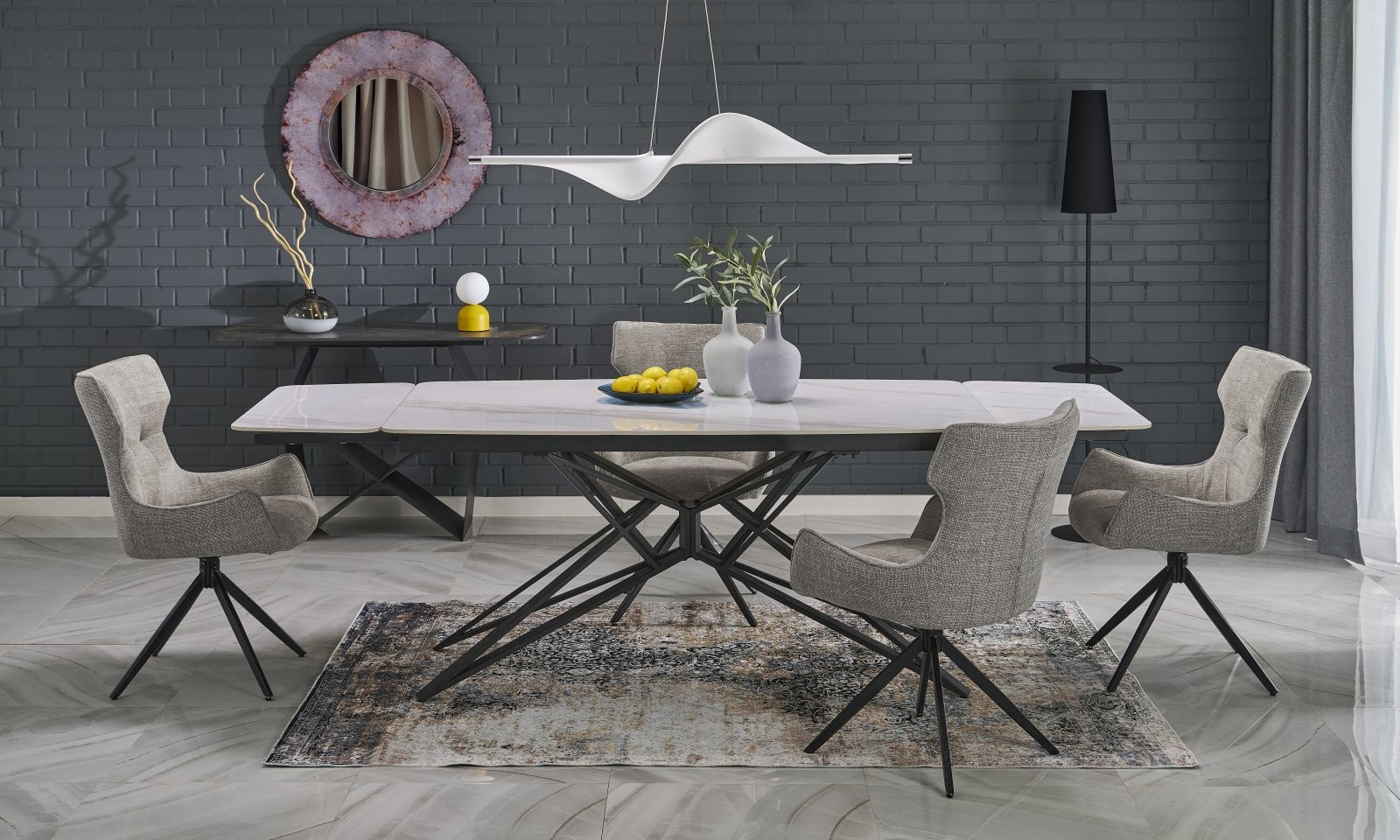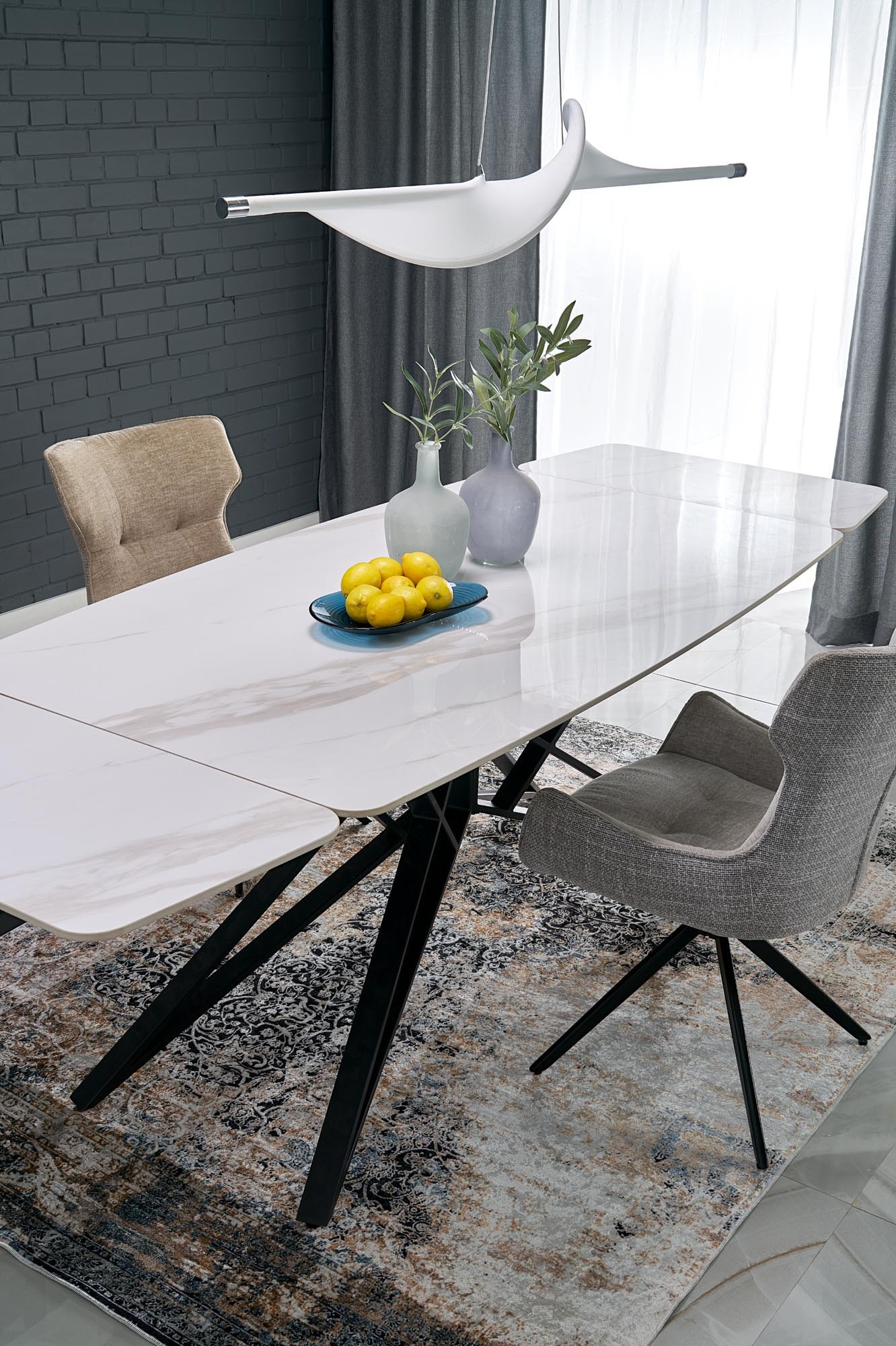 kihúzható asztal, anyag: szinterezett anyag / porszórt acél, szín: asztallap - fehér márvány, lábak - fekete