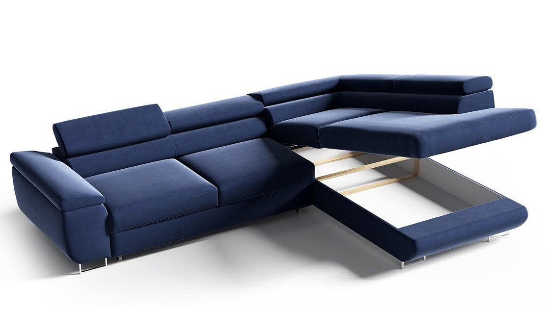 A kanapé része egy praktikus tárolóhely is, amely ideális ágynemű, párnák vagy takarók tárolására.