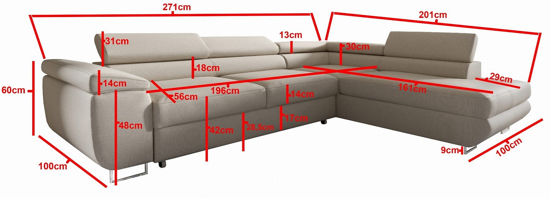 Méretei 271 x 201 cm elegendő helyet biztosítanak az egész család és barátok számára. Az állítható fejtámláknak köszönhetően a pozíciót az igényei szerint alakíthatja, így maximális kényelmet élvezhet televíziózás vagy könyvolvasás közben.Funkcionalitás és praktikusság