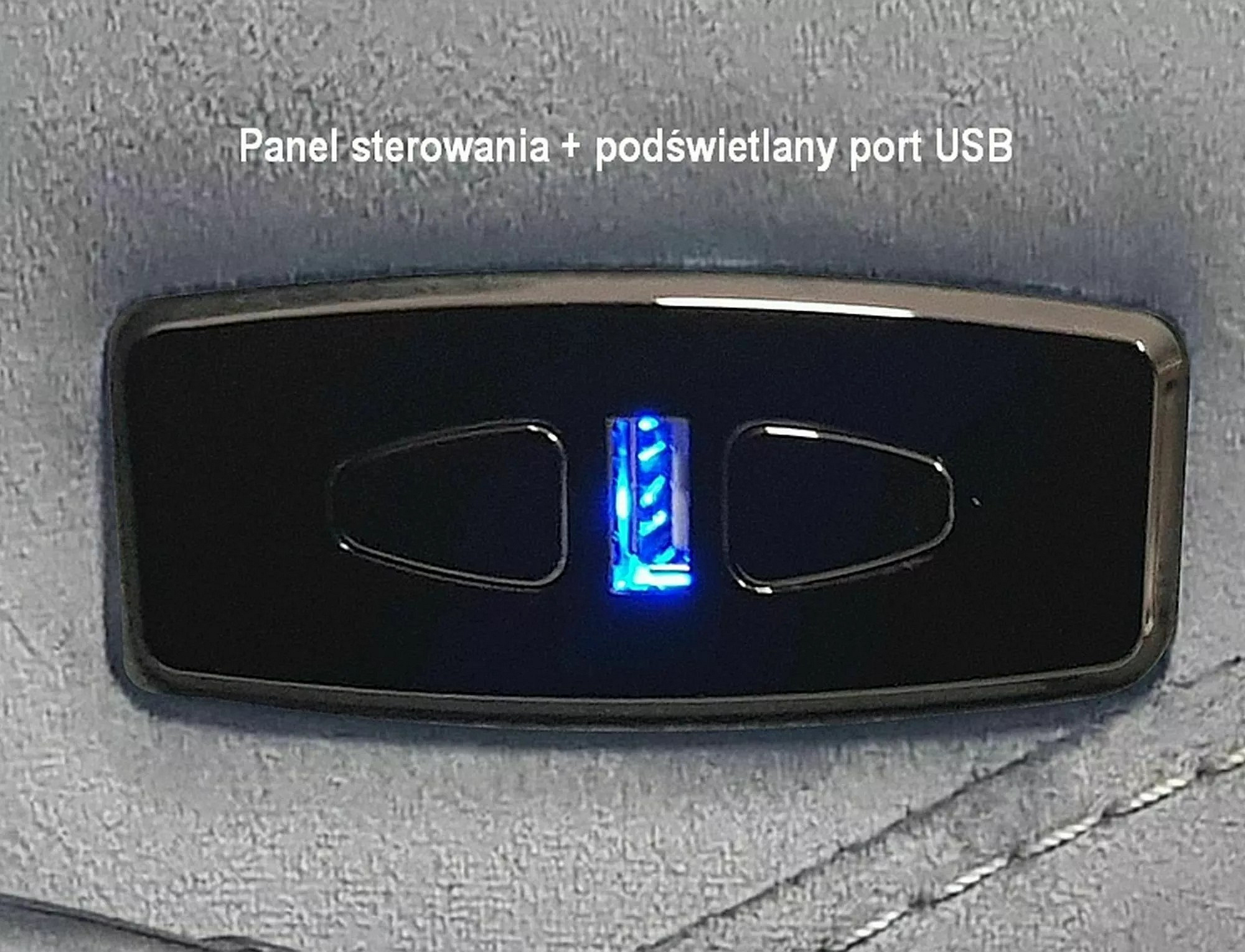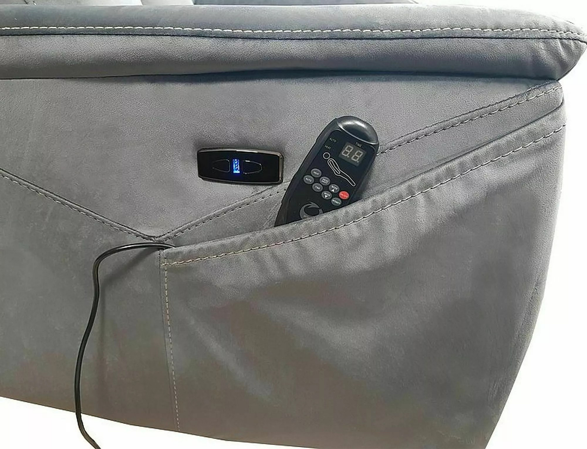 elektromos állítható fotel, masszázs funkcióval és derékfűtéssel, távirányító, USB port, bársony szövet: Bluvel, max. 150 kg 2x tápegység Tápegység masszázshoz: 1200mA/12V Tápegység a szétnyitáshoz: Tápegység: 2000mA/29V