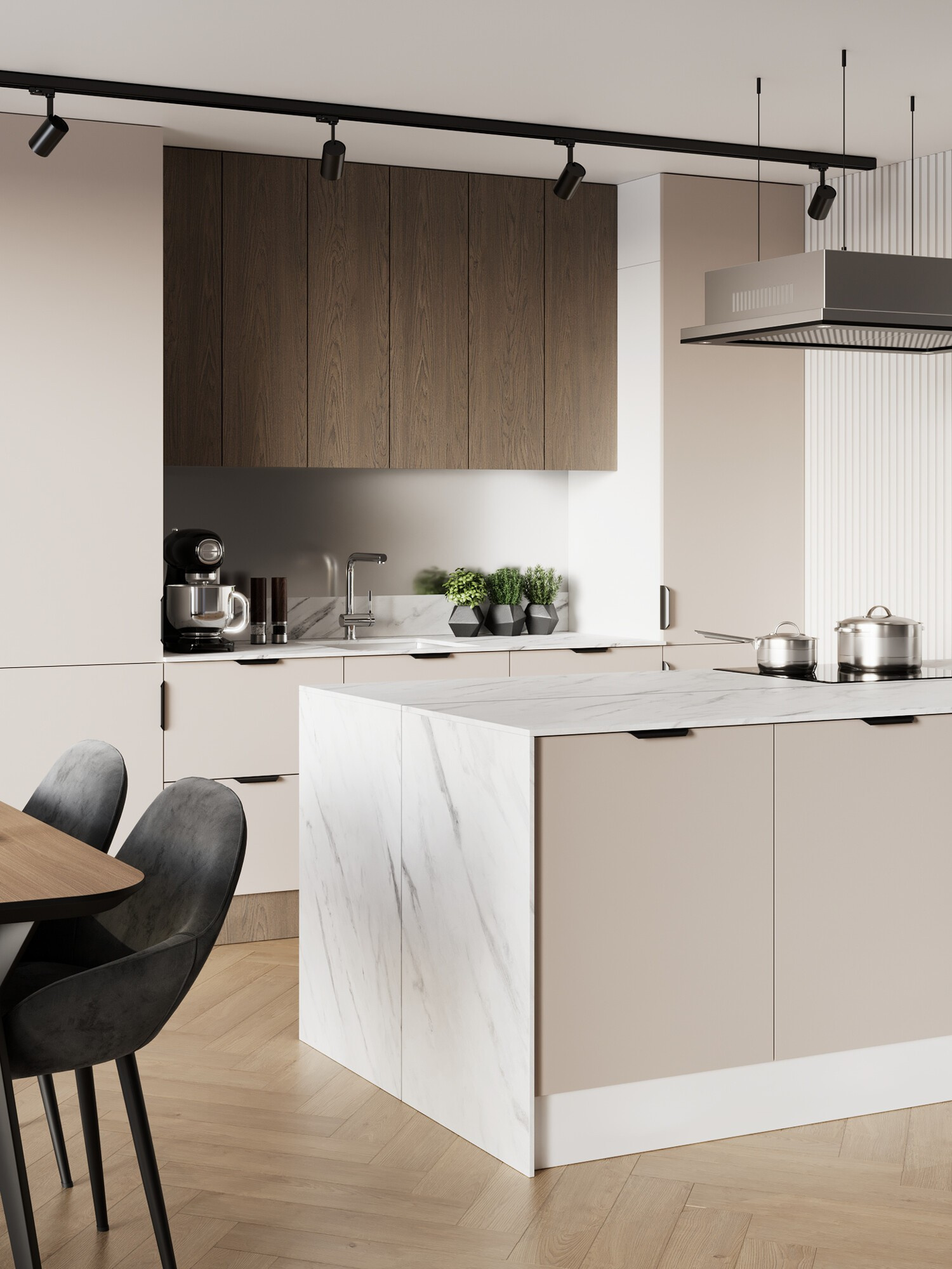 - Az alsó szekrények és a magas szekrények klasszikus fekete HEXA fém fogantyúval rendelkeznek a GTV gyártótól