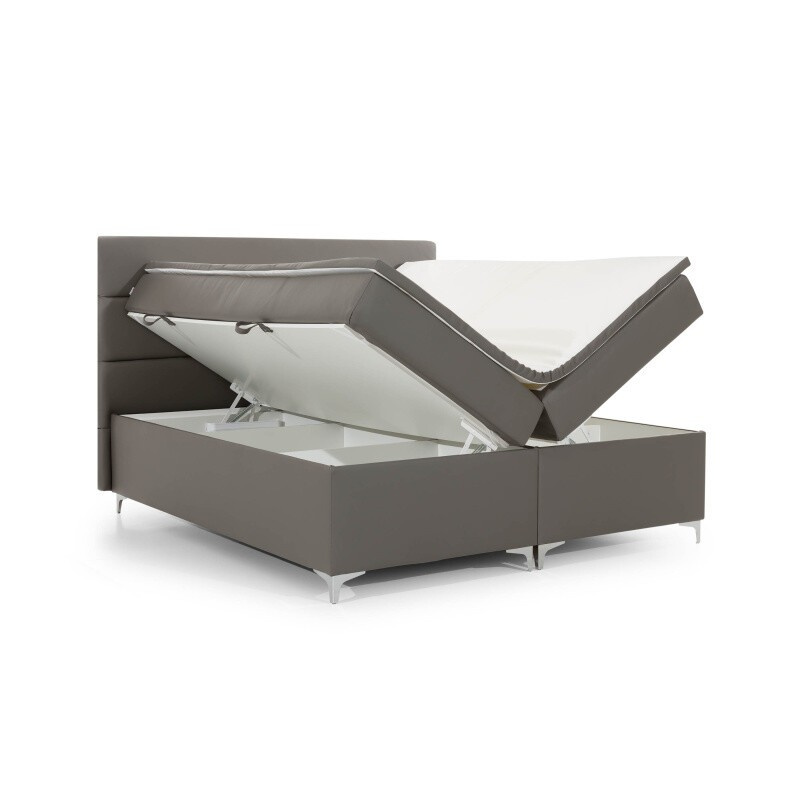 Amadeo is an exceptionally comfortable, sturdy and original design boxspring bed, which impresses with its unusual form and additional decorations. It is available in three variants 140/ 160 / 180 x 200 cm, so you can very easily adjust it to the metric size of your apartment. Among its features are: a high mattress, a stylish headrest equipped with additional T21 foam, a capacious storage compartment for bedding, metal chrome legs and elegant upholstery resistant to abrasion and dirt, which is available in many colors from the Eltap collection. The most original decorative element of our furniture is the possibility of equipping it with LED lighting. The mattress itself is made of bonel, as well as two additional layers of T25 foam located at the top and bottom of the mattress. The filling of the bed has also been reinforced with a 4 cm thick T21 foam topper. This solution makes it as comfortable as possible. It is worth having such a functional piece of furniture in your apartment.