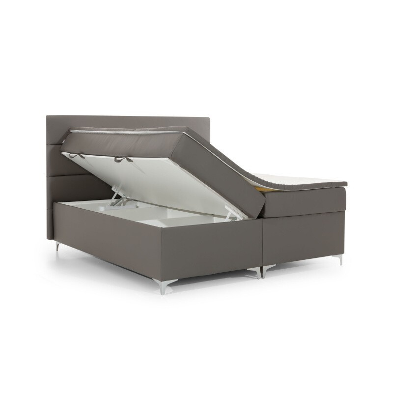 Amadeo is an exceptionally comfortable, sturdy and original design boxspring bed, which impresses with its unusual form and additional decorations. It is available in three variants 140/ 160 / 180 x 200 cm, so you can very easily adjust it to the metric size of your apartment. Among its features are: a high mattress, a stylish headrest equipped with additional T21 foam, a capacious storage compartment for bedding, metal chrome legs and elegant upholstery resistant to abrasion and dirt, which is available in many colors from the Eltap collection. The most original decorative element of our furniture is the possibility of equipping it with LED lighting. The mattress itself is made of bonel, as well as two additional layers of T25 foam located at the top and bottom of the mattress. The filling of the bed has also been reinforced with a 4 cm thick T21 foam topper. This solution makes it as comfortable as possible. It is worth having such a functional piece of furniture in your apartment.