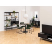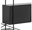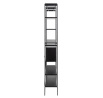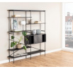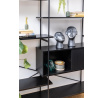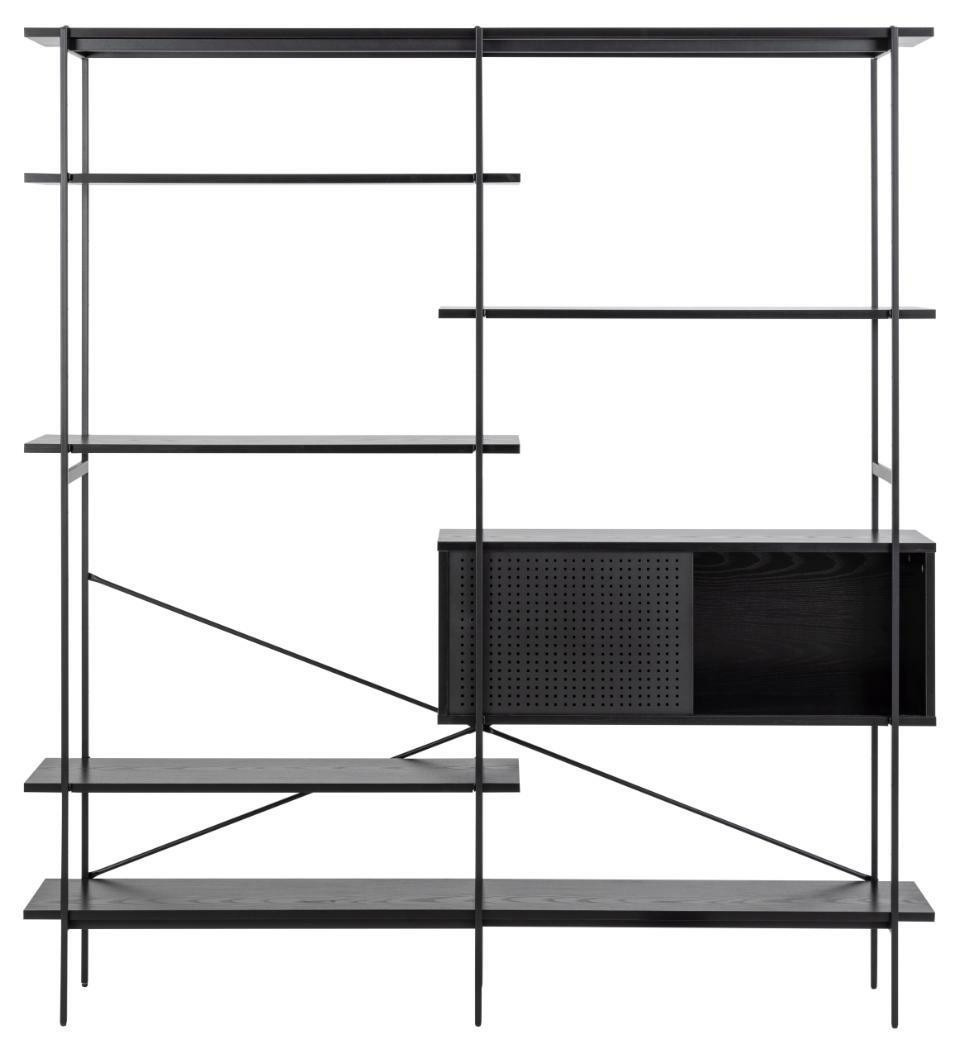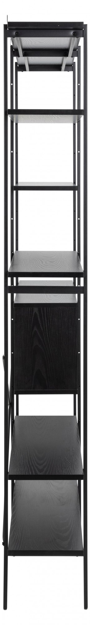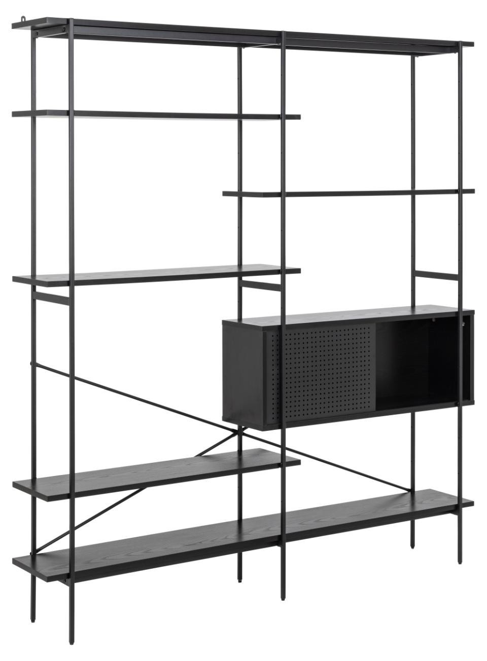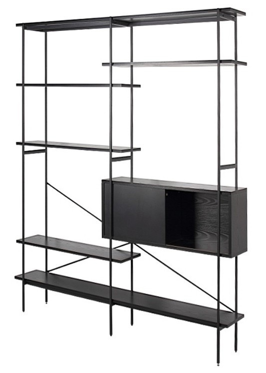 Az Angus polc egy ipari stílusú polc, amely ideális nagy mennyiségű könyv, trófea vagy más tárgy tárolására. A polc fém, feketére festett keretből, valamint négy rövidebb és két hosszabb polcból áll. A polcok fekete kőris hatású fóliával voltak bevonva. A polc érdekes eleme a fekete porfestékkel lakkozott fém tolóajtós szekrény. A szekrény csipkés előlapja lazaságot kölcsönöz neki. Tömeg: 41,4 kg. Kartondobozok méretei. Első: 12,5 cm x 196,5 cm x 38,5 cm. Második: 5,5cm x 193cm x 31cm