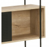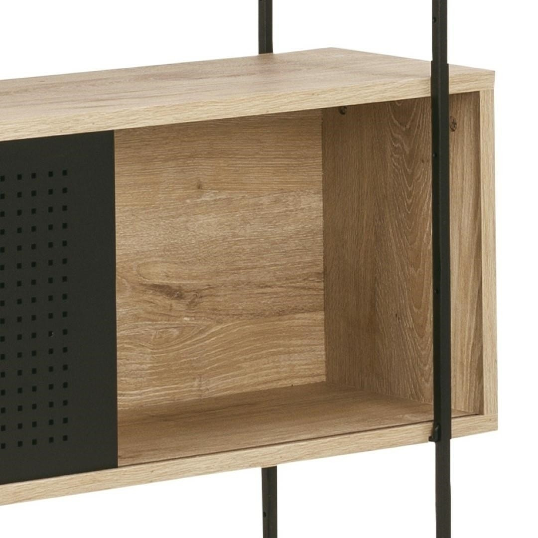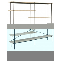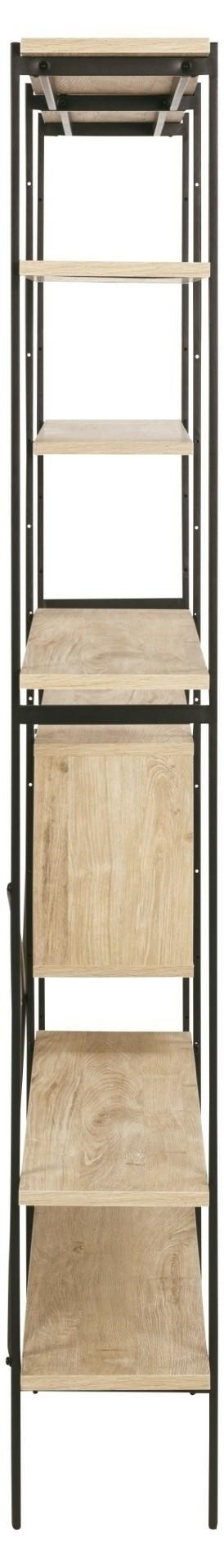 Az Angus polc egy ipari stílusú polc, amely ideális nagy mennyiségű könyv, trófea vagy más tárgy tárolására. A polc fém, feketére festett keretből, valamint négy rövidebb és két hosszabb polcból áll. A polcok fehérített tölgyet utánzó fóliával voltak bevonva. A polc érdekes eleme a fekete porfestékkel lakkozott fém tolóajtós szekrény. A szekrény csipkés előlapja lazaságot kölcsönöz neki. Tömeg: 41,4 kg. Kartondobozok méretei. Első: 12,5 cm x 196,5 cm x 38,5 cm. Második: 5,5cm x 193cm x 31cm