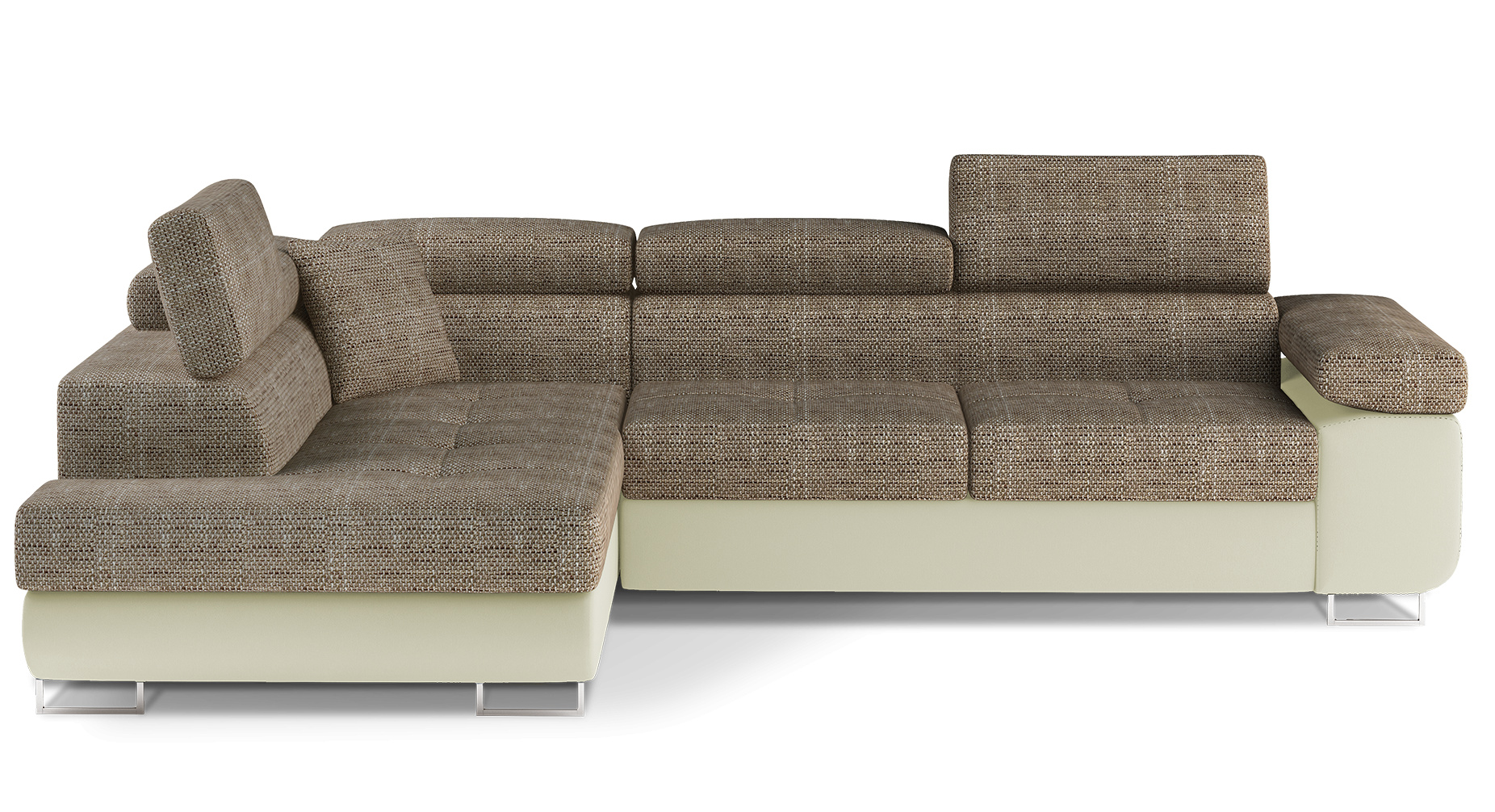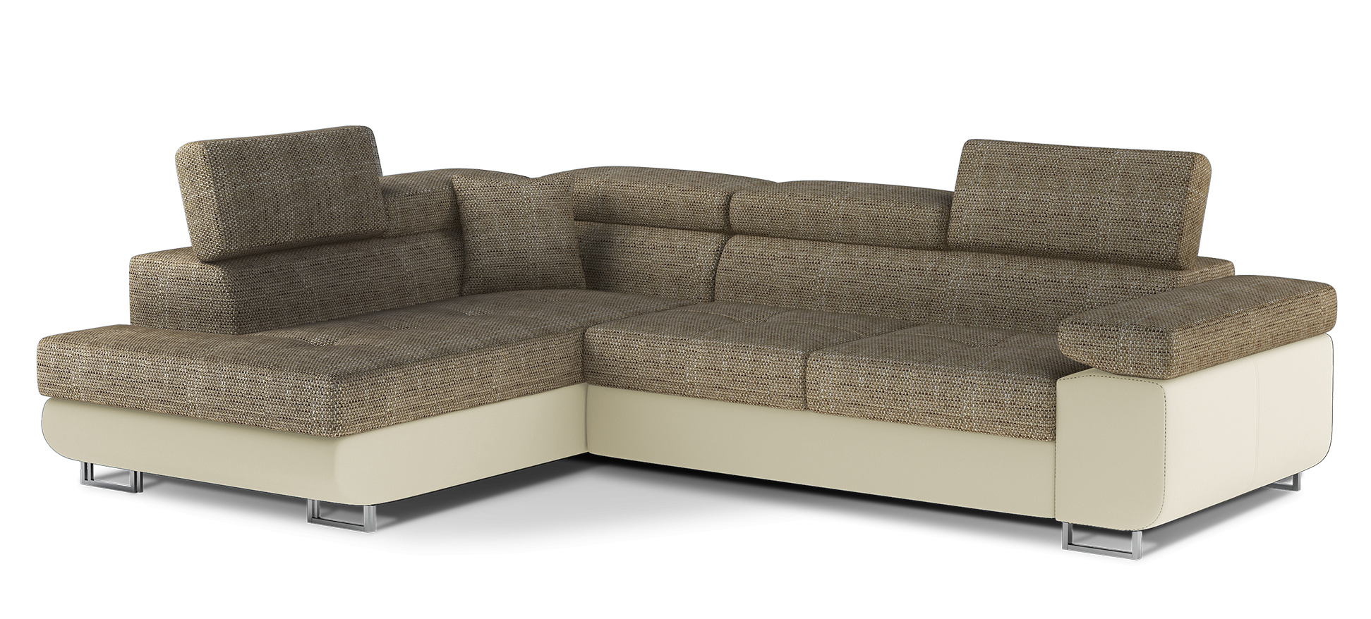 Anton is a multifunctional and spacious corner sofa bed made in a modern style. It is synonymous with high quality and maximum comfort, thanks to a wide seat with a depth of 60 cm and extremely elastic T30 foam. Anton, measuring 275 x 202 x 90 cm with a large sleeping area of 125 x 193 cm, means to have a good night’s sleep. The furniture also has a large storage compartment for bedding. The maximum effect of the perceived comfort is influenced by, among others, high, adjustable headrests, 28 centimetres wide armrests, as well as 9cm high metal legs. Should you be interested in what else Anton offers - we ncourage you to choose our corner sofa bed.