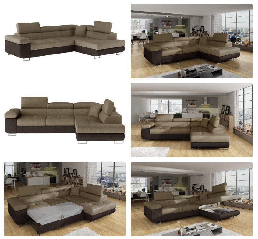 Anton is a multifunctional and spacious corner sofa bed made in a modern style. It is synonymous with high quality and maximum comfort, thanks to a wide seat with a depth of 60 cm and extremely elastic T30 foam. Anton, measuring 275 x 202 x 90 cm with a large sleeping area of 125 x 193 cm, means to have a good night’s sleep. The furniture also has a large storage compartment for bedding. The maximum effect of the perceived comfort is influenced by, among others, high, adjustable headrests, 28 centimetres wide armrests, as well as 9cm high metal legs. Should you be interested in what else Anton offers - we ncourage you to choose our corner sofa bed.