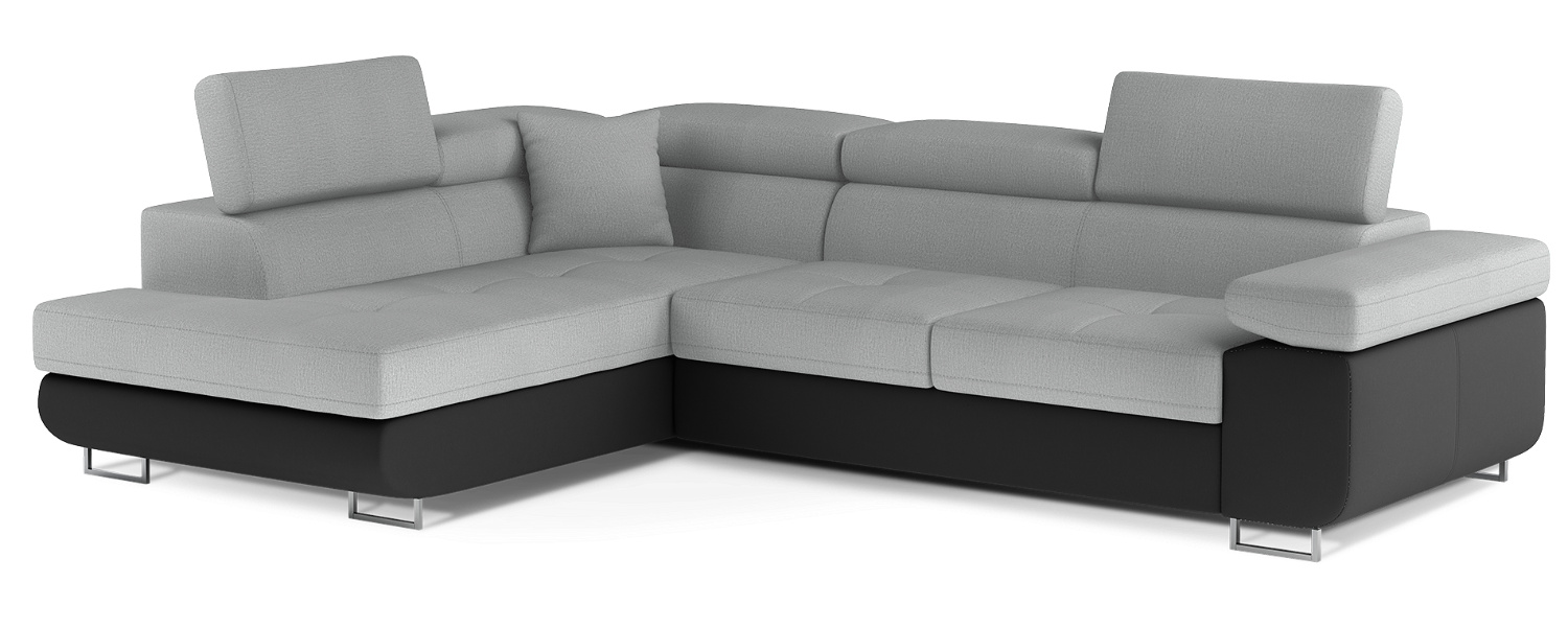 Anton is a multifunctional and spacious corner sofa bed made in a modern style. It is synonymous with high quality and maximum comfort, thanks to a wide seat with a depth of 60 cm and extremely elastic T30 foam. Anton, measuring 275 x 202 x 90 cm with a large sleeping area of 125 x 193 cm, means to have a good night’s sleep. The furniture also has a large storage compartment for bedding. The maximum effect of the perceived comfort is influenced by, among others, high, adjustable headrests, 28 centimetres wide armrests, as well as 9cm high metal legs. Should you be interested in what else Anton offers - we ncourage you to choose our corner sofa bed.