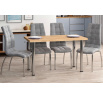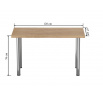 Méretek: - hosszúság: 128 cm - szélesség: 67 cm - magasság: 75 cm - lap vastagsága: 3,8 cm Anyag: - lap: laminált lap - lap szélei: ABS műanyaggal zárva - lábak: krómozott acél Szín: - lap: arany tölgy craft - lábak: króm