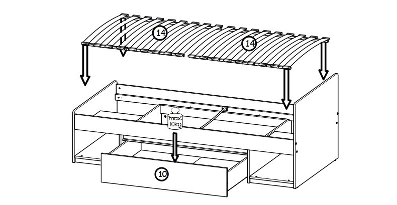 | Ágy a fekvőhelyek száma szerint | 1 gyermek részére |