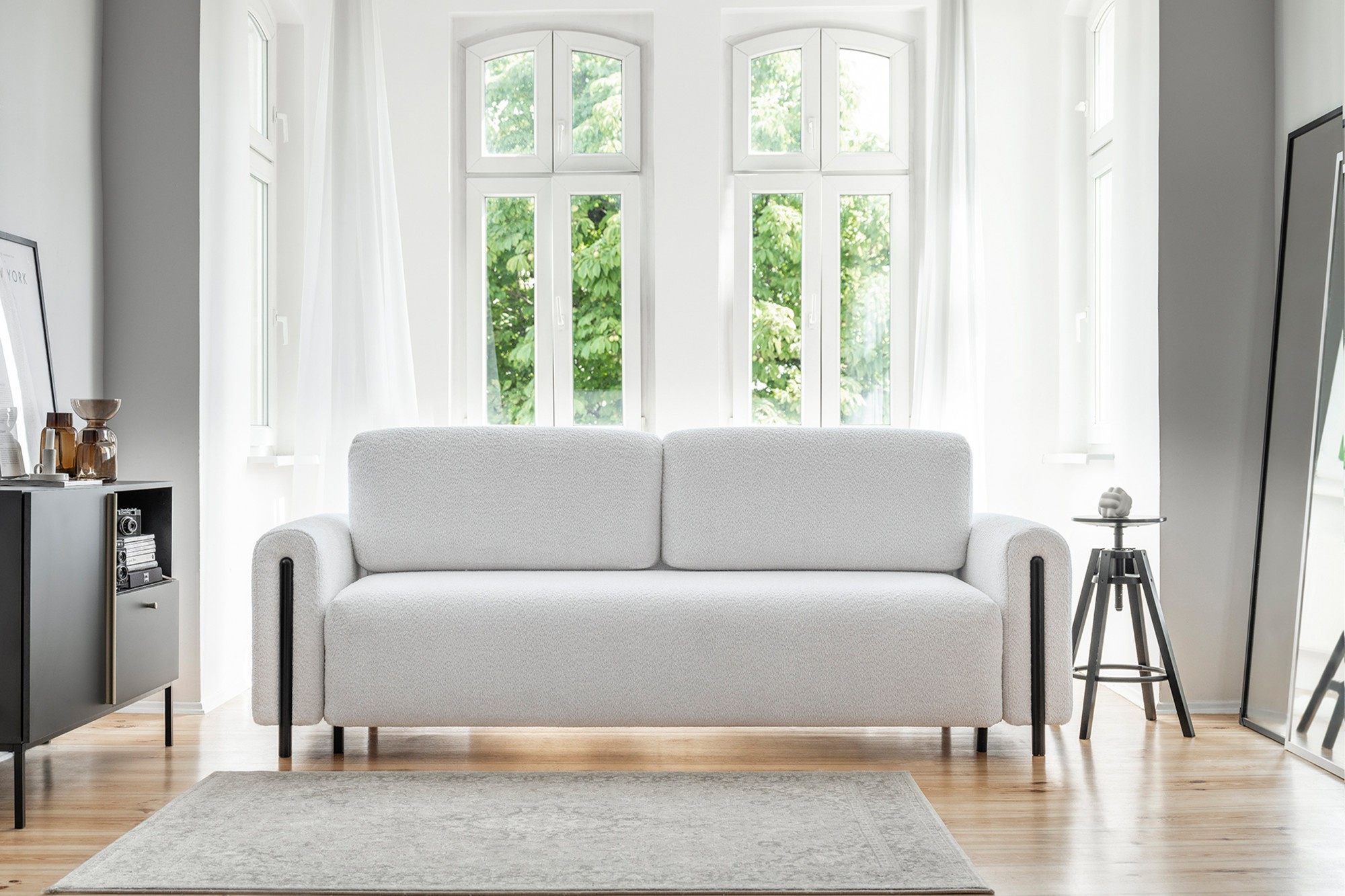 The Arcadova sofa is an elegant piece of furniture that will add style and comfort to your interior. It boasts an impressive width of 244 cm, providing ample seating space. The depth is 97 cm, and the height is 97 cm. The sofa's seat is soft and comfortable, and the material of the backrest and back cushions ensures support for your back. Additionally, the Arcadova features semi-circular armrests that add character to it. The sofa is equipped with black furniture legs made of solid wood. The leg height is 12 cm, providing an elegant and stable base for the sofa. This piece of furniture combines style and comfort and is perfect for relaxation and leisure in the living room. It is also versatile in terms of interior design, making it suitable for various design styles.