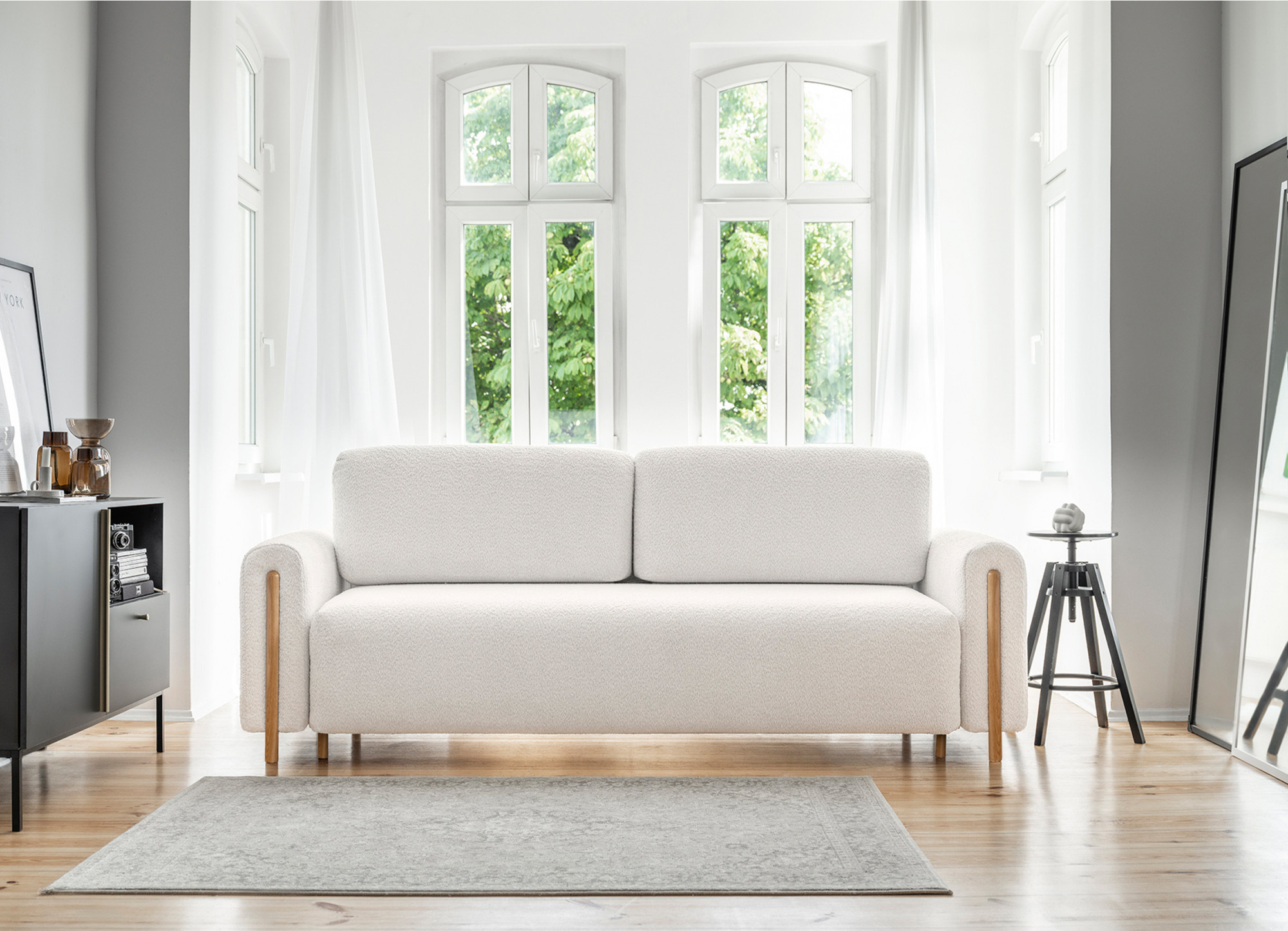 The Arcadova sofa is an elegant piece of furniture that will add style and comfort to your interior. It boasts an impressive width of 244 cm, providing ample seating space. The depth is 97 cm, and the height is 97 cm. The sofa's seat is soft and comfortable, and the material of the backrest and back cushions ensures support for your back. Additionally, the Arcadova features semi-circular armrests that add character to it. The sofa is equipped with oak wood legs made of solid wood. The leg height is 12 cm, providing an elegant and stable base for the sofa. This piece of furniture combines style and comfort and is perfect for relaxation and leisure in the living room. It is also versatile in terms of interior design, making it suitable for various design styles.