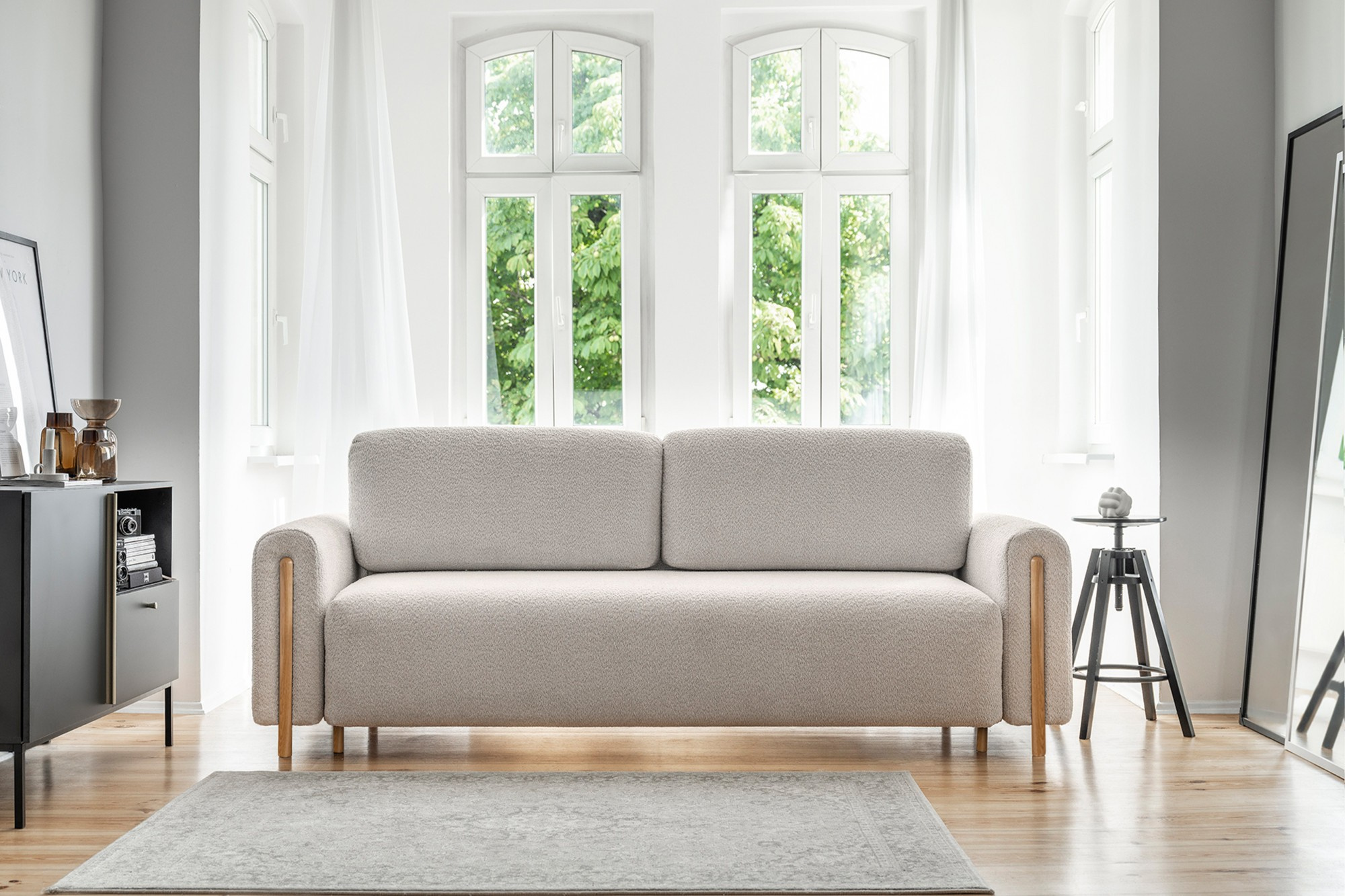 The Arcadova sofa is an elegant piece of furniture that will add style and comfort to your interior. It boasts an impressive width of 244 cm, providing ample seating space. The depth is 97 cm, and the height is 97 cm. The sofa's seat is soft and comfortable, and the material of the backrest and back cushions ensures support for your back. Additionally, the Arcadova features semi-circular armrests that add character to it. The sofa is equipped with oak wood legs made of solid wood. The leg height is 12 cm, providing an elegant and stable base for the sofa. This piece of furniture combines style and comfort and is perfect for relaxation and leisure in the living room. It is also versatile in terms of interior design, making it suitable for various design styles.
