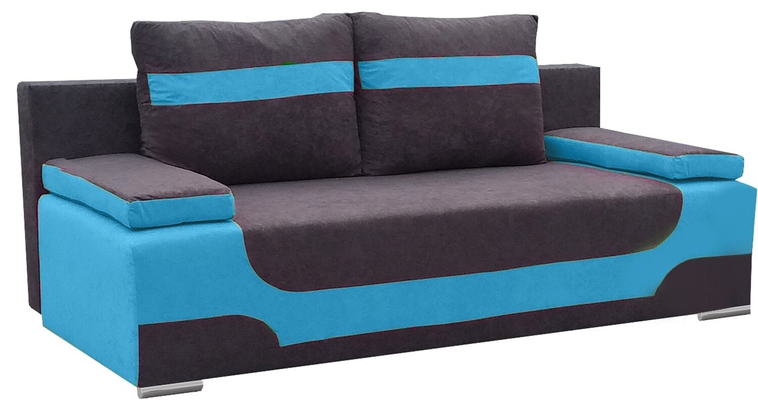 Area is a modern, functional and original sofa for fans of original solutions. Geometric shape, stylish decorations on the upholstery and cushions, original insert in a different shade of upholstery located in the lower part of the sofa, on the sides and cushions - all this gives the Area sofa, an extremely original flair. It is also worth mentioning the wide armrests, properly profiled backrest and additional, spacious cushions, which increase the comfort of use. Area is a piece of furniture with dimensions of 200 x 92 x 90 cm - for resting during the day, and thanks to the sleeping function - a bed of 200 x 140 cm with an additionally spacious container for bedding. The whole is supported by a DL opening mechanism. Thanks to the use of bonel and T25 foam, the seat of the sofa is extremely flexible and soft. Simple form, sleek construction and modern design - this is what the Area sofa is like. We are in favor of it!